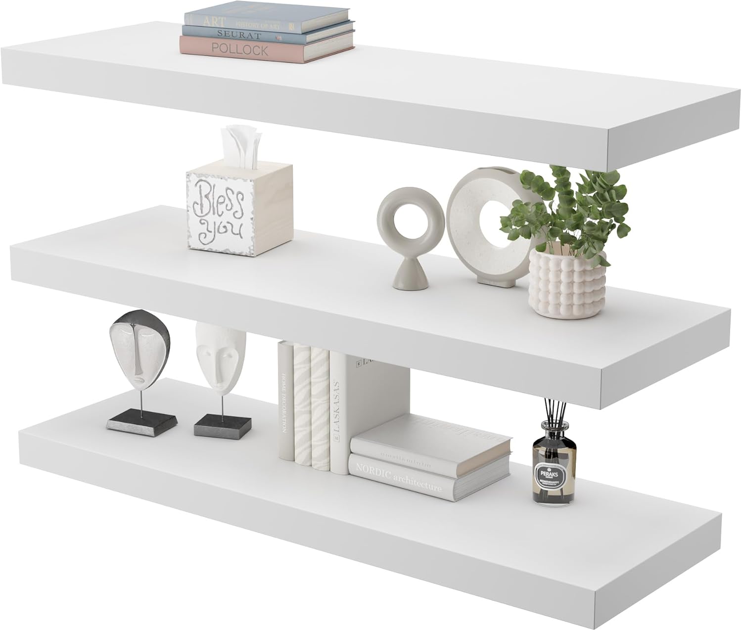 Large Floating Shelves for Wall Set of 3 Wooden Wall Shelves 30 in x 12.75 in x 2 in Room Decor Long Shelf with Invisible Wall Mount Bracket for Bedroom Kitchen Living Room White