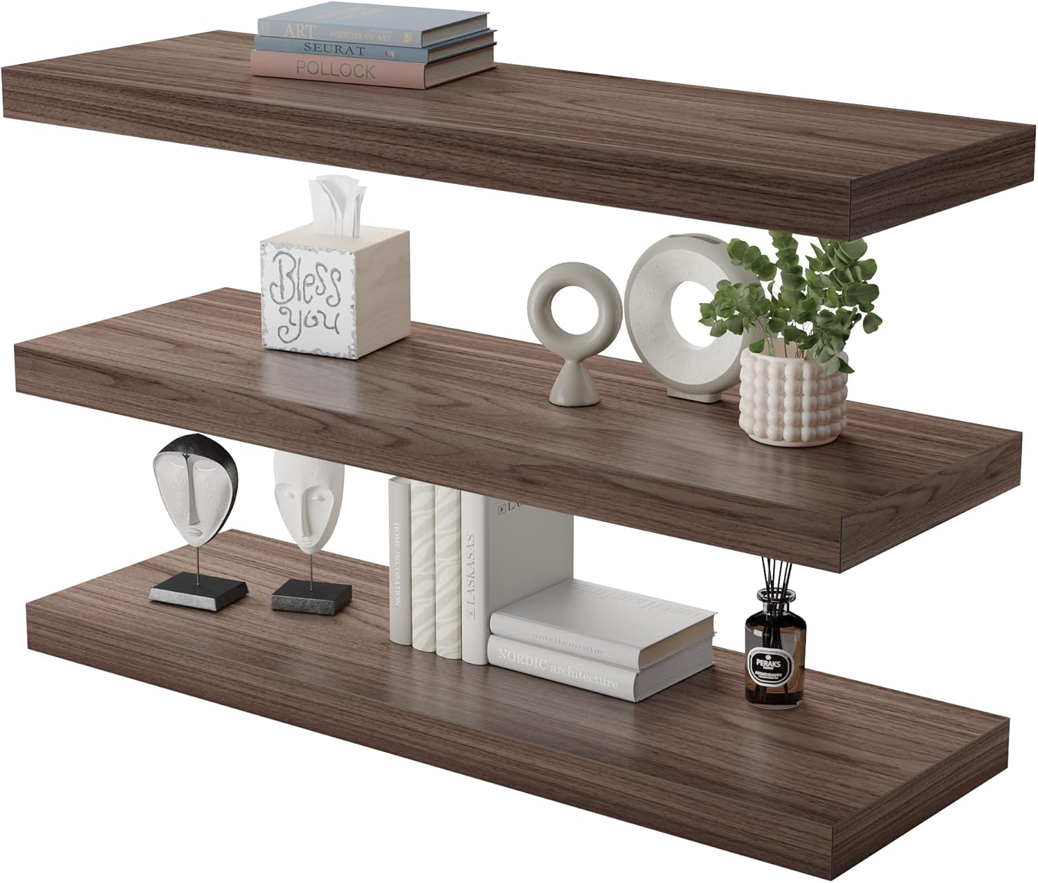 Large Floating Shelves for Wall Set of 3 Wooden Wall Shelves 30 in x 12.75 in x 2 in Room Decor Long Shelf with Invisible Wall Mount Bracket for Bedroom Kitchen Living Room Walnut