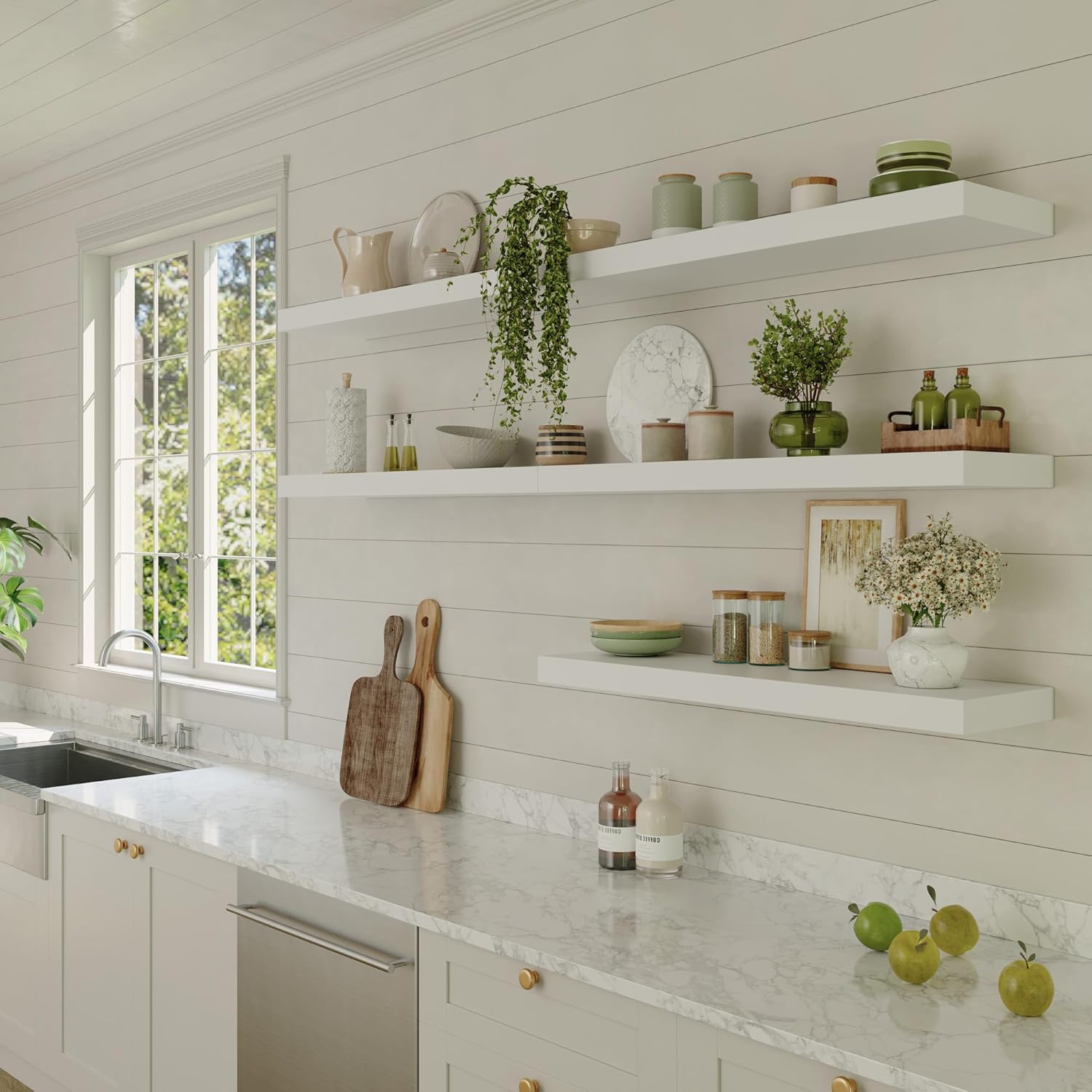 Large Floating Shelves for Wall Set of 2 Wooden Wall Shelves 24 in x 12.75 in x 2 in Room Decor Long Shelf with Invisible Wall Mount Bracket for Bedroom Kitchen Living Room White