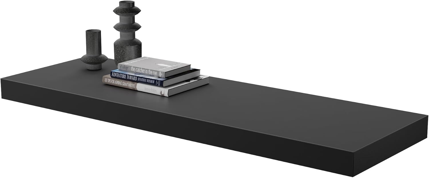 Large Floating Shelves for Wall Set of 1 Wooden Wall Shelves 24 in x 12.75 in x 2 in Room Decor Long Shelf with Invisible Wall Mount Bracket for Bedroom Kitchen Living Room Black