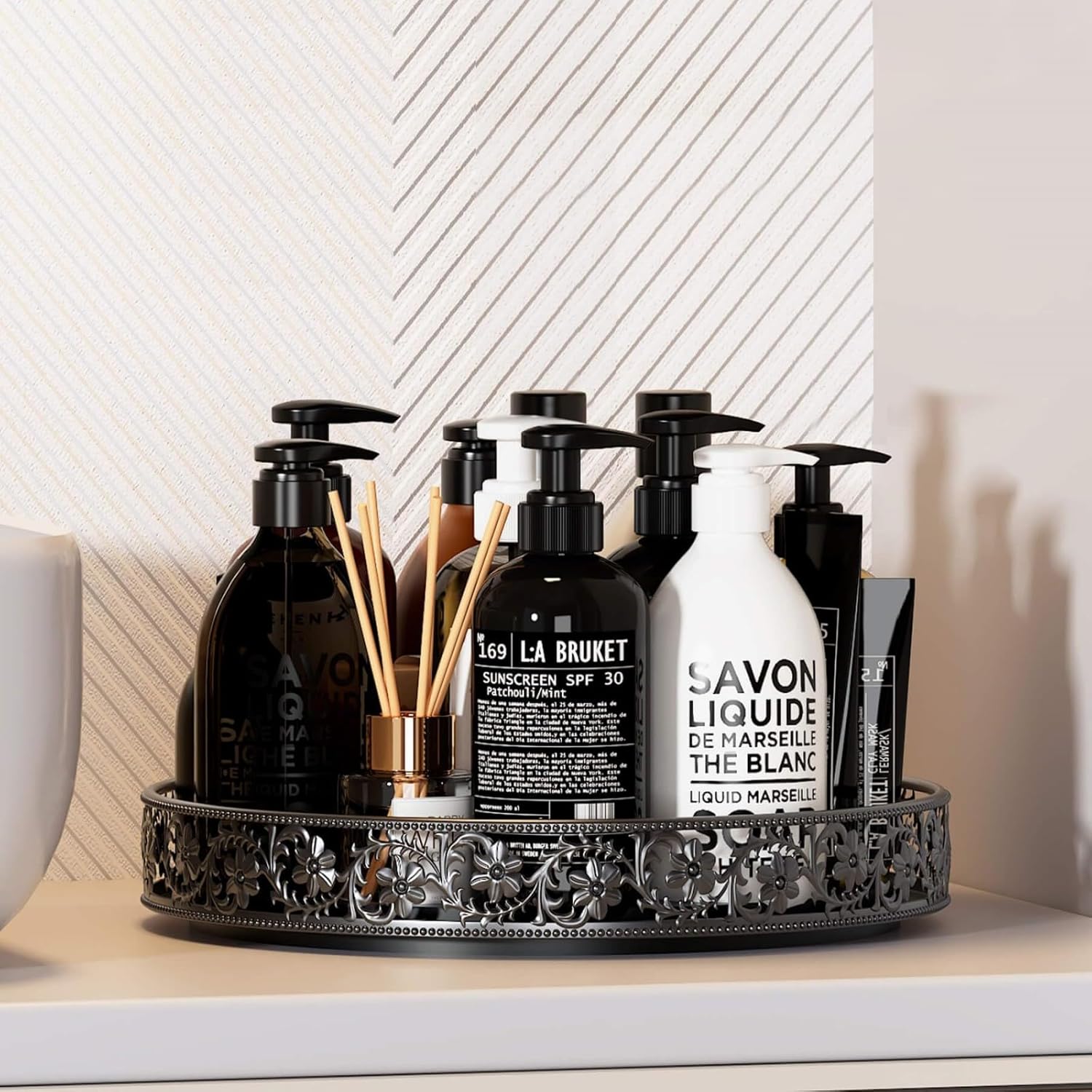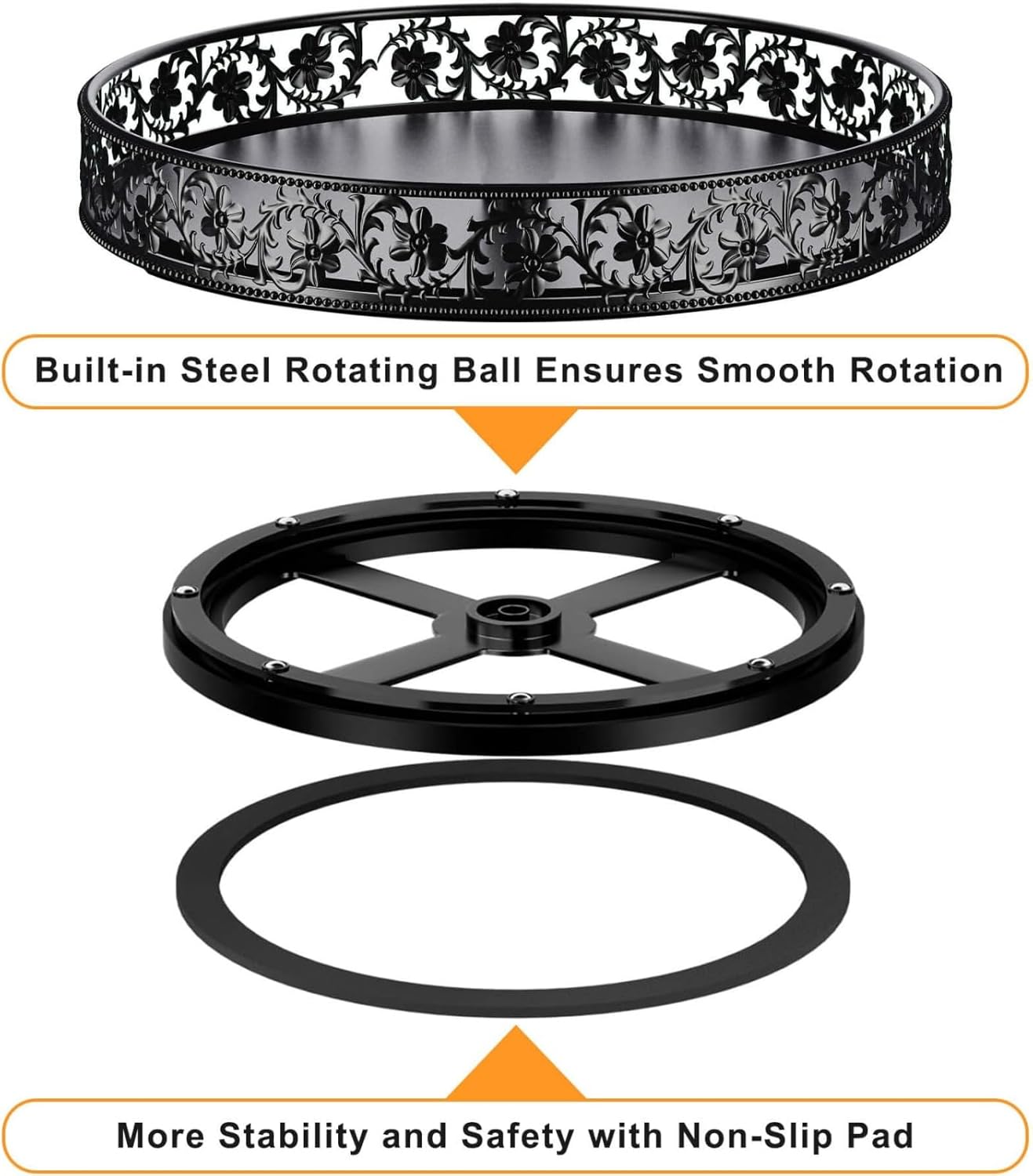 - Floral Raised Edges Design: The raised edge lazy susan features a beautiful classic floral design, provides superior decorative vision, and prevents items from falling while spinning, making it safer to move the lazy susan organizer from one place to another. The open design keeps items visible and easily accessible.
