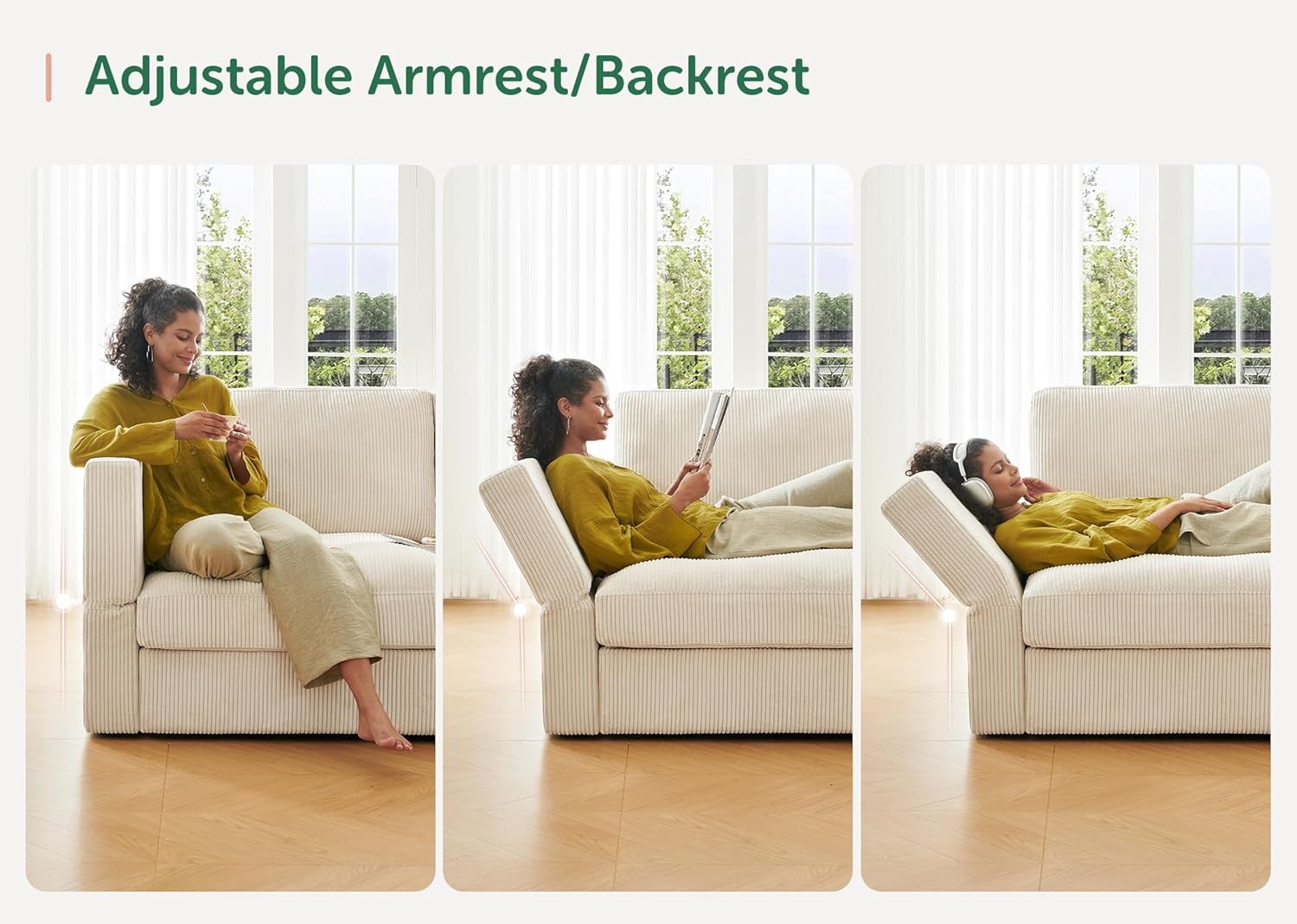 HONBAY Modular Sectional Sofa with Storage Corduroy Sectional Sleeper Sofa Modular Sectional Couches for Living Room,Beige