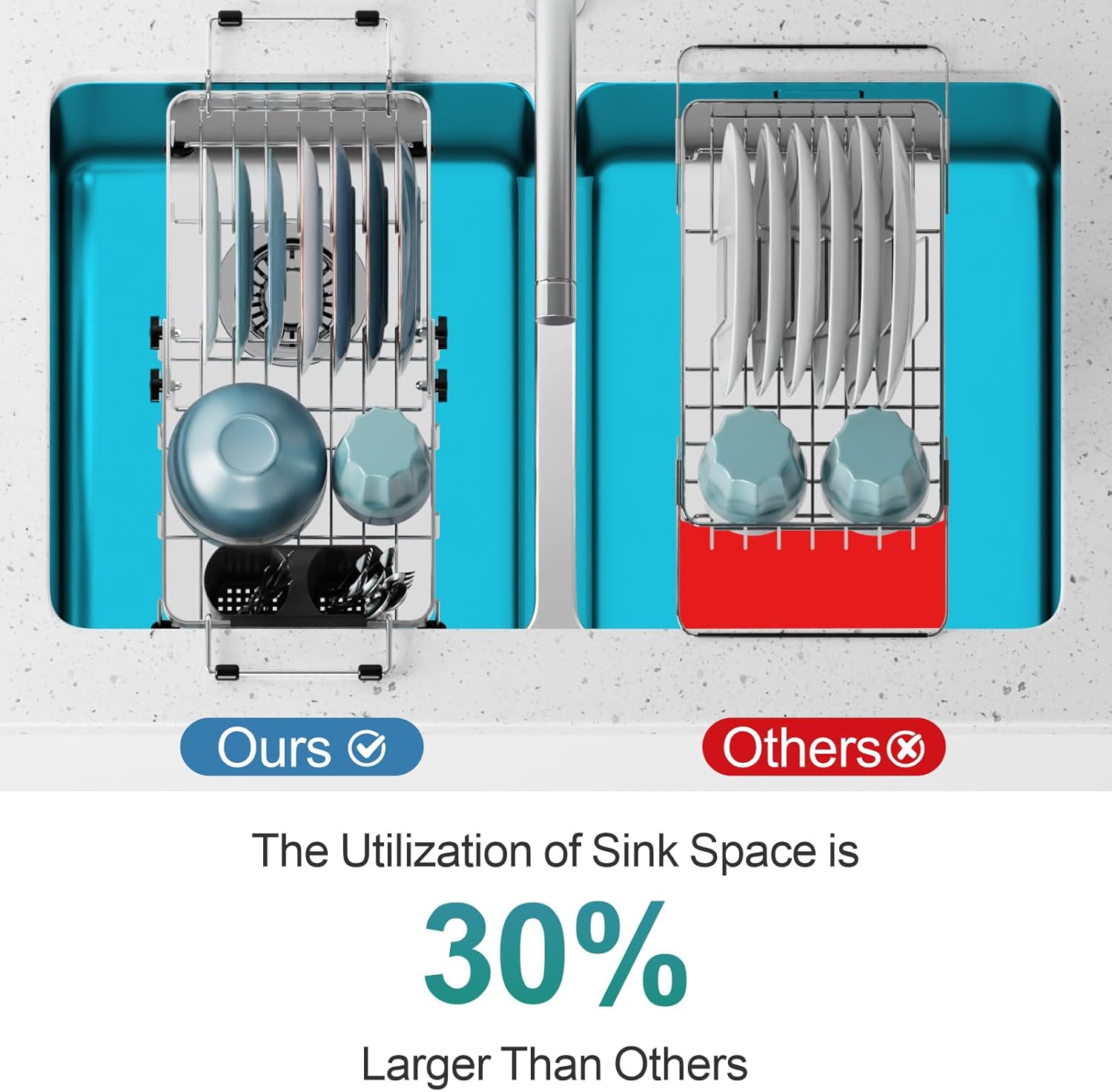 - Rustproof Stainless Steel Design: Crafted from premium stainless steel that's 30% thicker than most, this dish rack is sturdy, durable, and 100% rustproof—perfect for daily use in humid kitchen environments. Enjoy worry-free drying, knowing your dish rack will stay clean and corrosion-free for years.