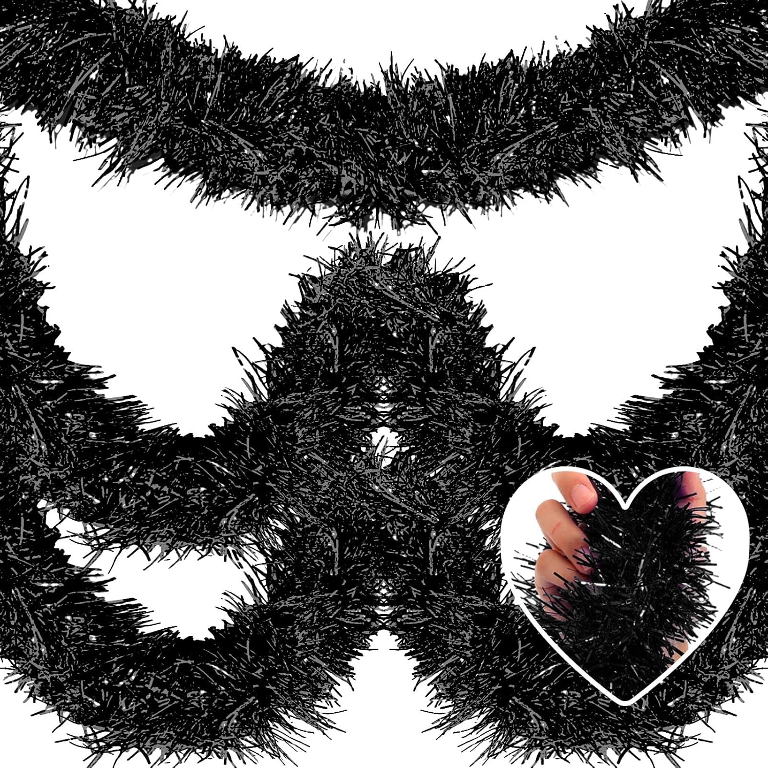 50 Feet Christmas Tinsel Garland, Metallic Twist Wall Hanging Tinsel Backdrop for Parade Floats, Carnival, Birthday, Wedding, New Year Party Decorations (Black, 2in x 50ft)