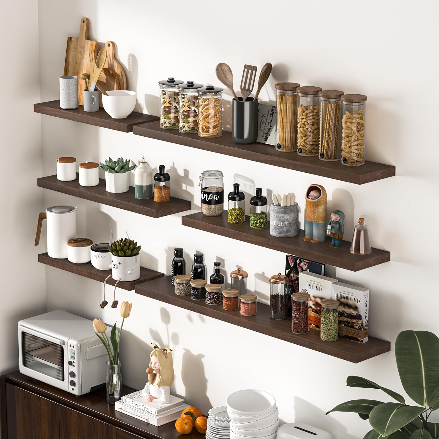 - Extra Deeper & Thicker for Storage - Each board measures 30"W x 8"D x 1.4"H. Extra deeper and thicker design in order to bring maximizes storage space and weight capacity, even hold up to 70 lb. This floating shelf taking up zero square feet, reduces clutter and highlights décor in compact spaces. It can help make full use of the empty wall, making it much more space-saving and making your room look larger and tidier.