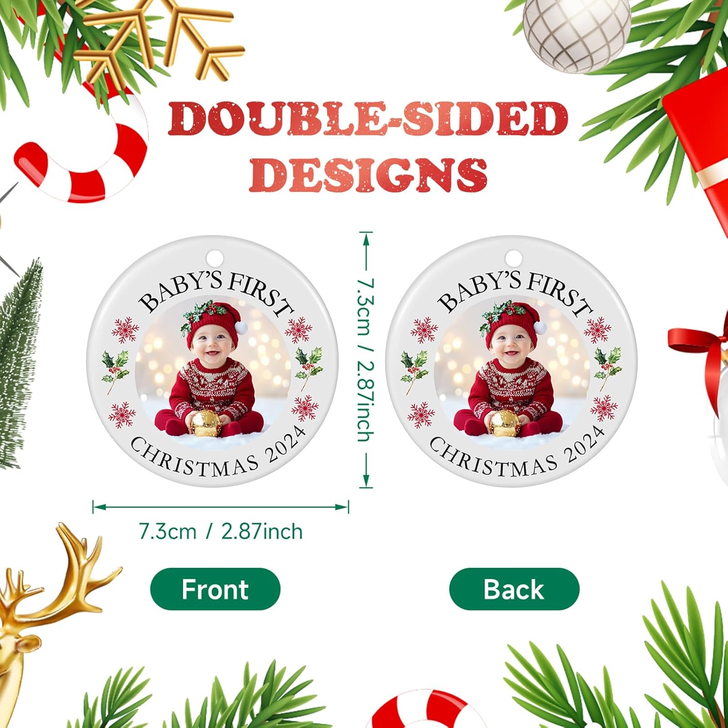- FIRST CHRISTMAS ORNAMENT: This personalized ornament is perfect for commemorating your baby’s first Christmas. It is suitable for both boys and girls. Personalize baby's first christmas ornament uniquely with your Baby Photo, Name, Date of Birth. Click "Customize Now" to start personalizing your own ornament and celebrating baby's first Christmas with this cherished baby's first Christmas ornament 2025.