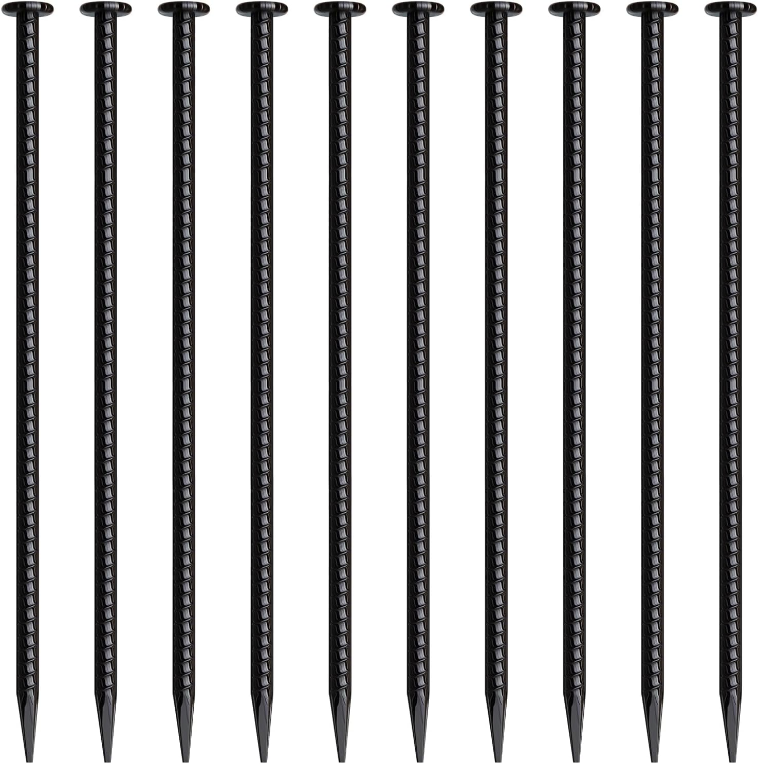 - 【HEAVY DUTY REBAR STAKES】These ground stakes are constructed from galvanized steel and feature a black powder coating, providing excellent rust resistance. The metal stakes are designed to be more durable and resistant to fading, ensuring long-lasting quality. The ribbed ground anchors offer solid support, securing firmly without bending. These ground anchors are particularly well-suited for measuring signs and supporting garden plants.