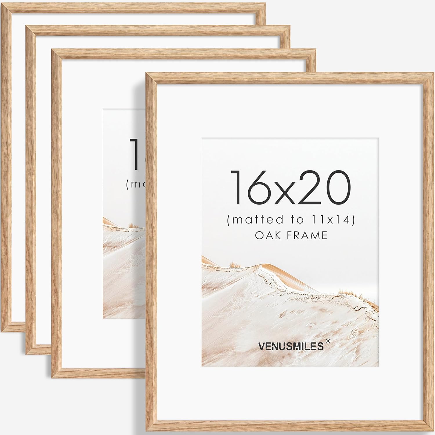 16x20 Picture Frame Set of 4 Natural Solid Oak Photo Frames with 11x14 Removable Mat Wall Hanging Large Handcrafted Frame with HD Plexiglass Wall and Tabletop Display Large Poster Frame