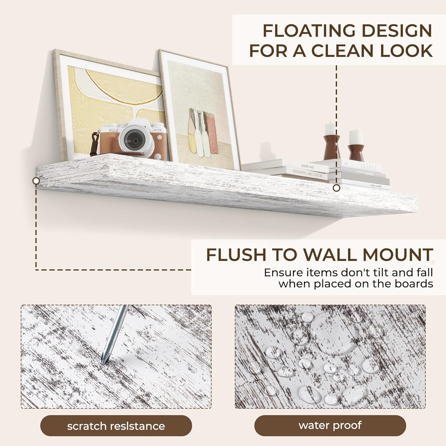 RICHFOCUS 48Inch Floating Shelves for Wall 2 Pack Shelves for Bedroom|Kitchen|Bathroom Wall Mounted Rustic Distressed Wood Floating Shelf with Invisible Brackets for Books|Storage|Decor, Rustic