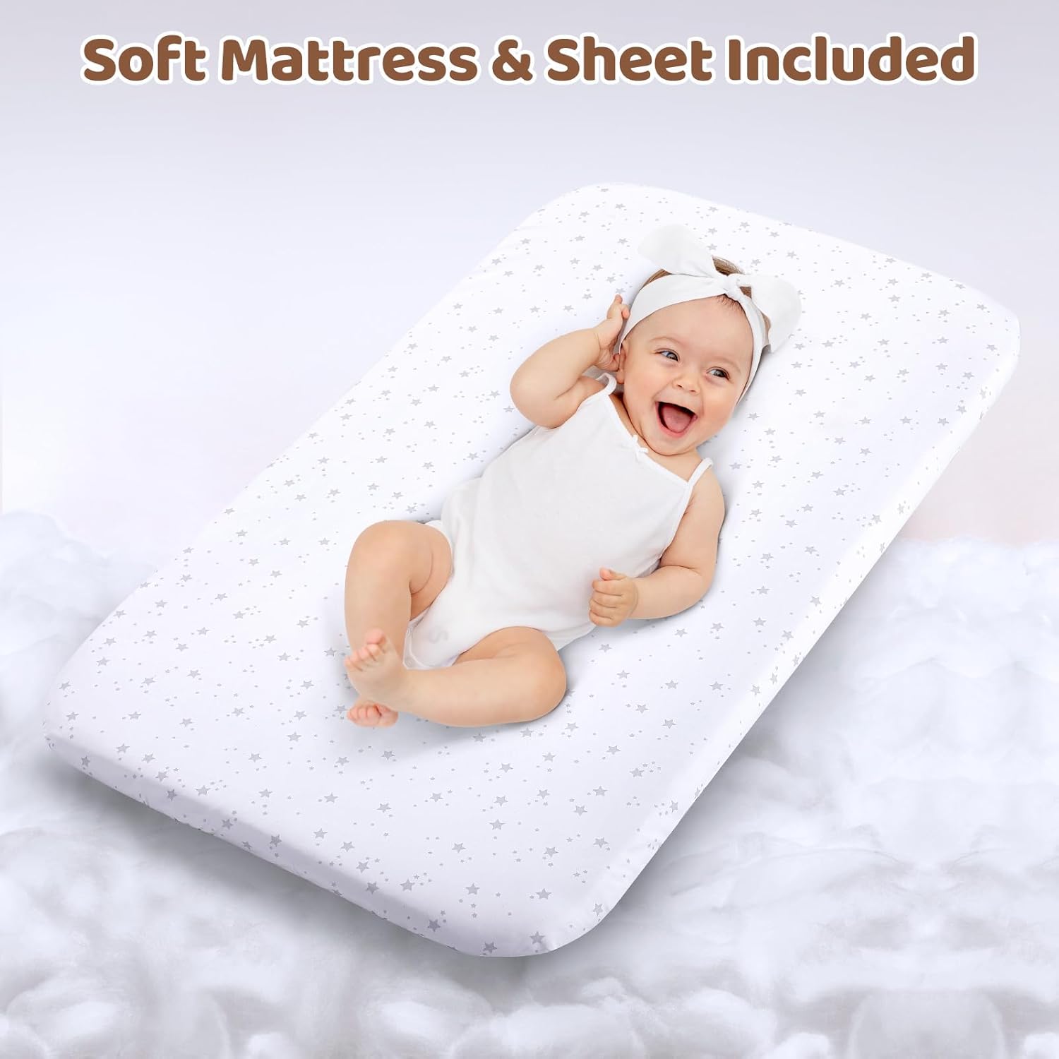 - 【Bassinet Bedside Sleeper】 The bedside crib comes with mattress pad and fitted cute sheet. Additionally, a large storage basket is included, providing convenient storage for baby's essentials within easy reach.