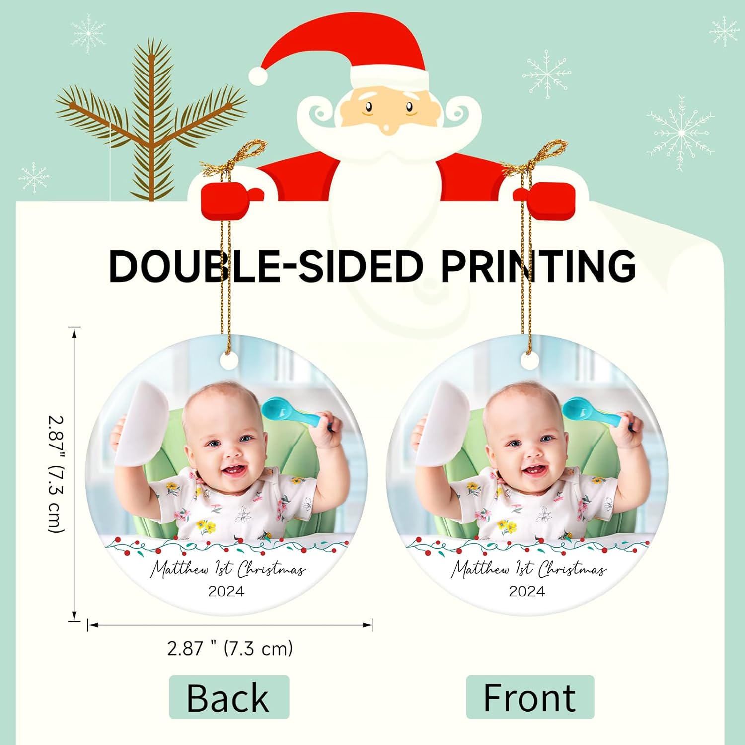 - FIRST CHRISTMAS ORNAMENT: This personalized ornament is perfect for commemorating your baby’s first Christmas. It is suitable for both boys and girls. Personalize baby's first christmas ornament uniquely with your Baby Photo, Name, Date of Birth. Click "Customize Now" to start personalizing your own ornament and celebrating baby's first Christmas with this cherished baby's first Christmas ornament 2025.