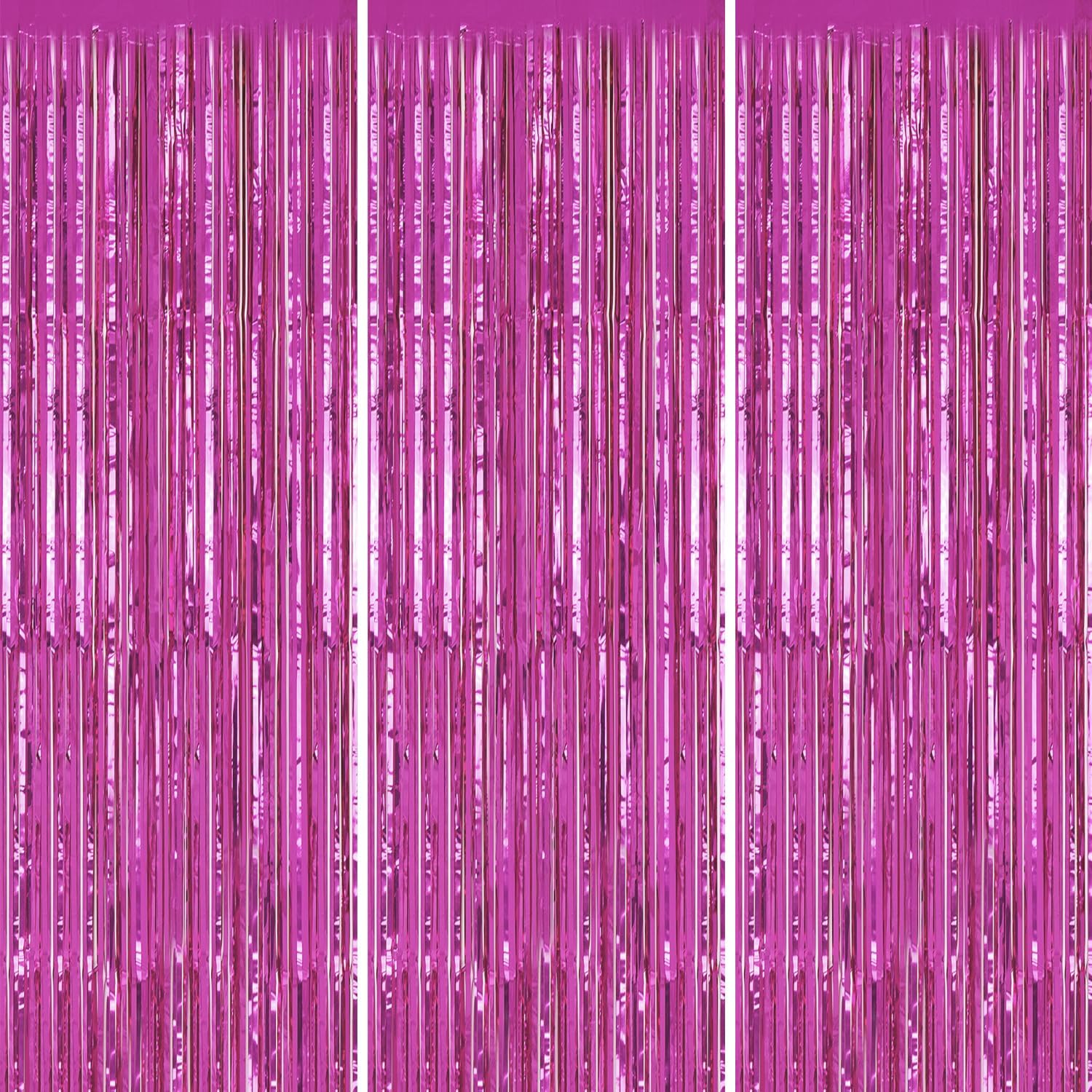 3 Pack Foil Fringe Backdrop - Hot Pink Shiny Tinsel Curtains for Party Decoration/Photo Booth Props - 3.3x8.2 FT Metallic Foil Backdrop for Birthday, Wedding, Graduation, Christmas.
