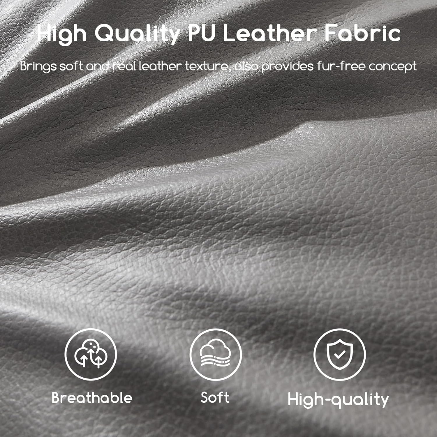 HIGOGOGO Round Stuffed Pouf Ottoman, Pu Leather Poufs with Foam Chunk Filling, Furry and Fluffy Pouf Foot Stool Storage Ottoman, 20 X 15 Floor Poufs Foot Rest for Living Room, Grey