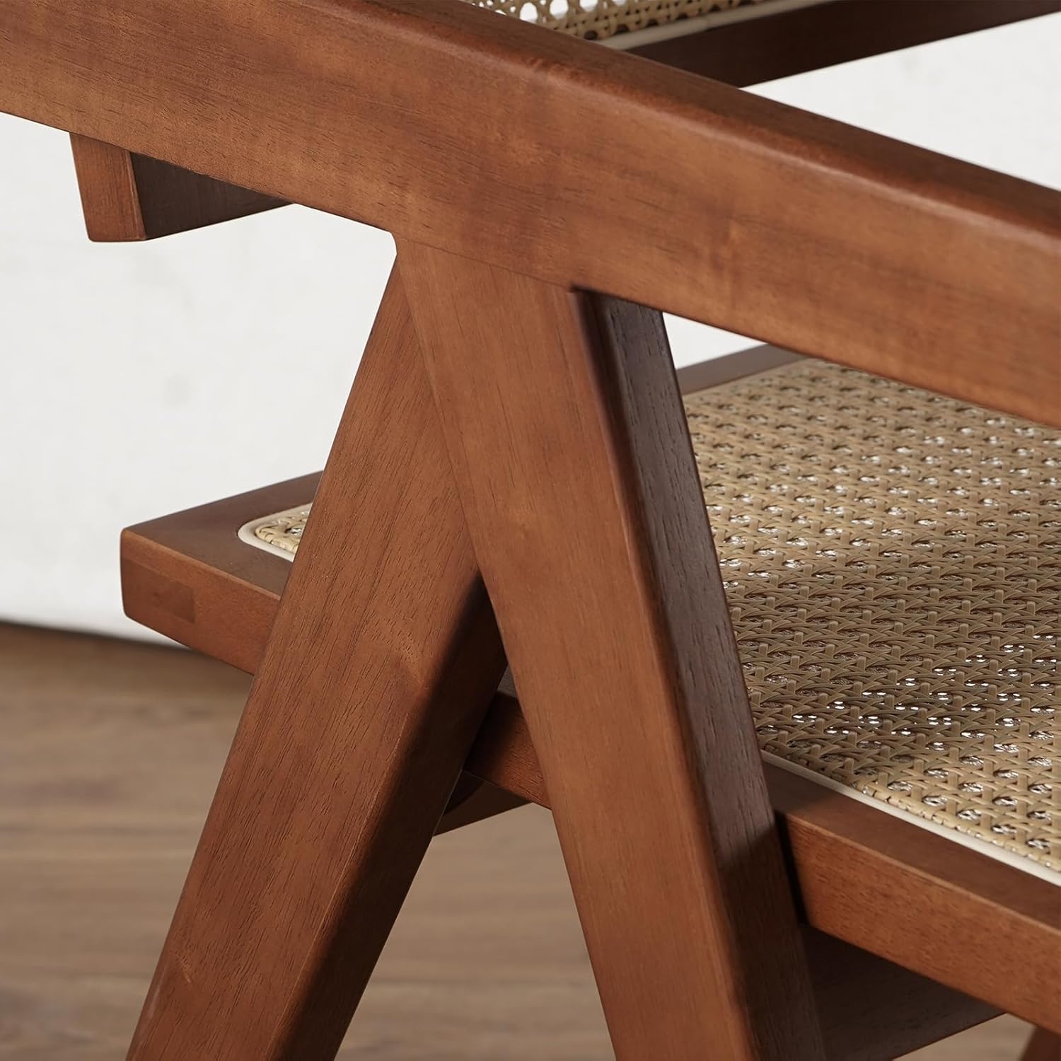 Rattan Accent Chairs Set of 2, Mid Century Modern Dining Armchairs With Cane Back, for Kitchen, Bedroom, Living Room, Reading Room, Outdoor - Walnut