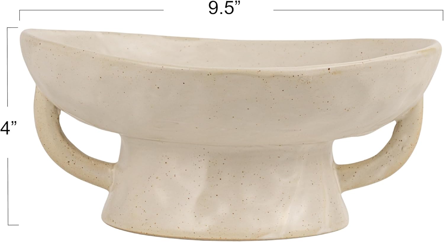 Creative Co-Op Stoneware Footed Pedestal/Bowl with Handles, Reactive Glaze, White