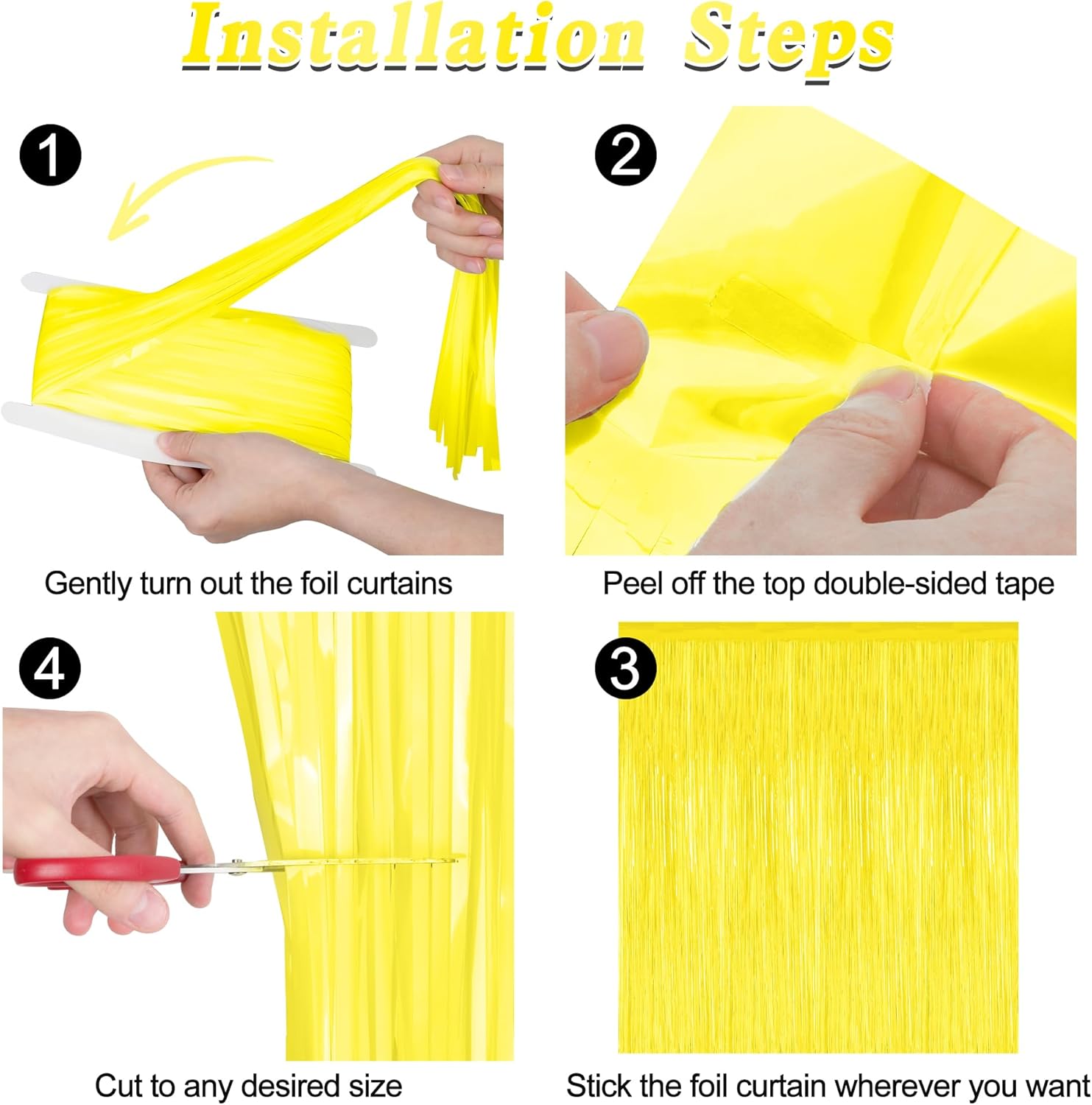 - Colorful Design: Each fringe backdrop are yellow color, with a reflective metallic finish, both fashionable and vibrant, and are suitable for your photo props.