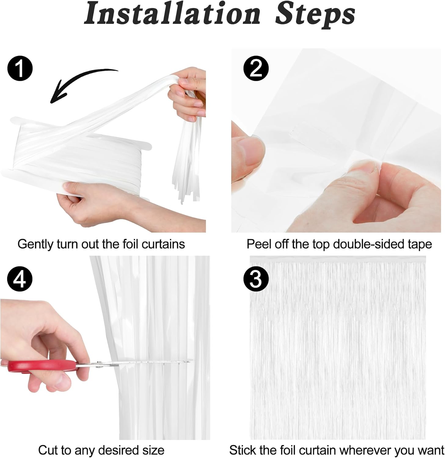 - Package Includes: This set includes 2 pcs white foil curtains, each measuring 3.28 x 7.05 feet, the oversized size makes it easy to cut to the right length as needed.