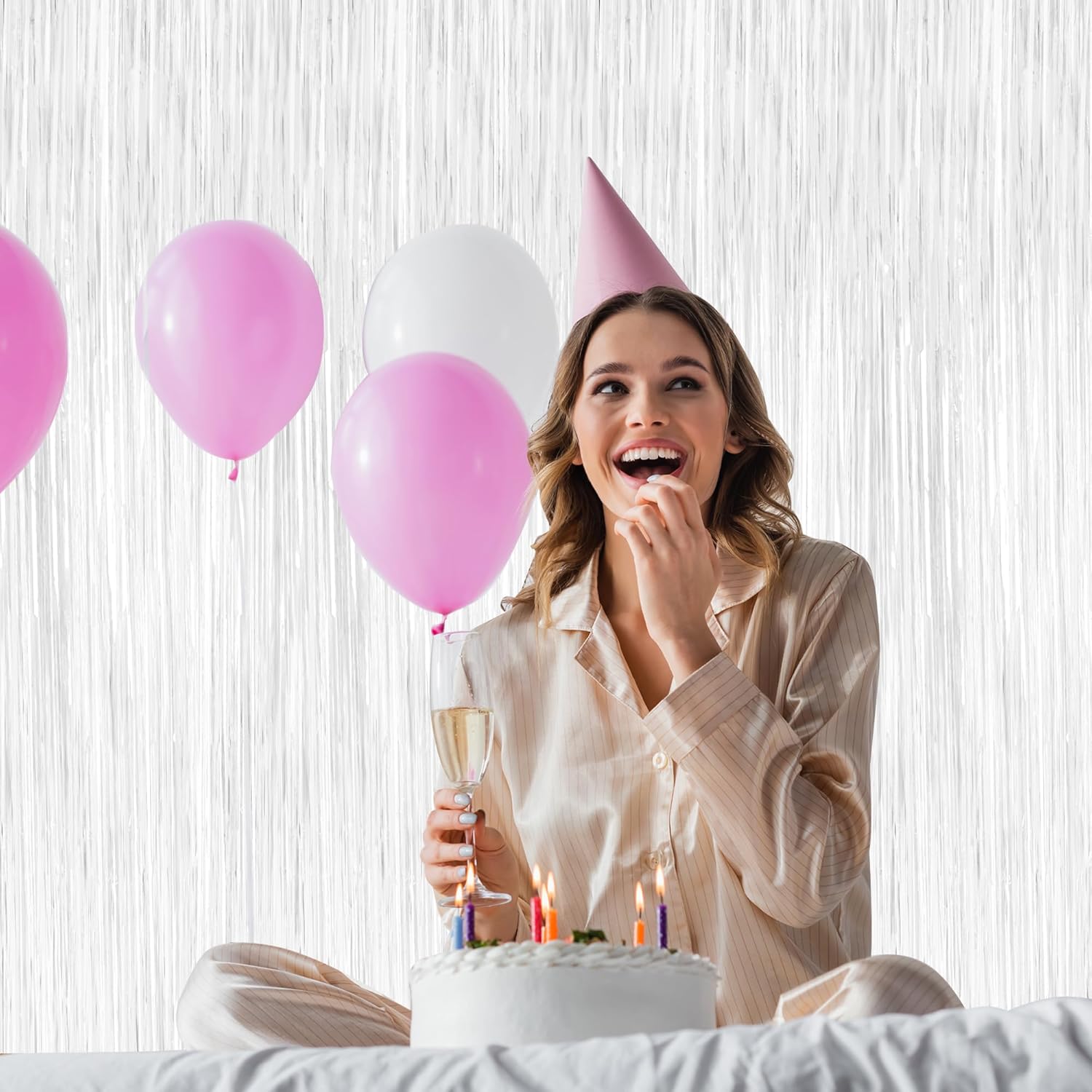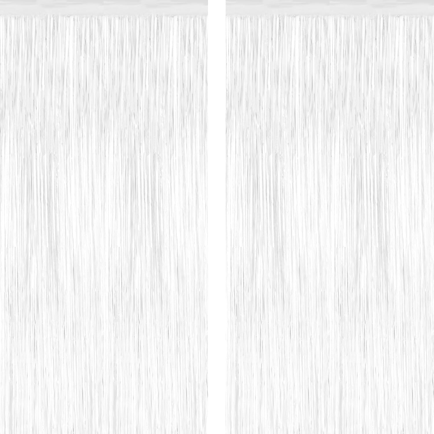 2 Pack Tinsel Backdrop, 3.28 x 7.05 Feet White Party Decorations, Metallic Foil Fringe Curtains Streamer Backdrop, Party Supplies Photo Props for Birthday Anniversaries Wedding