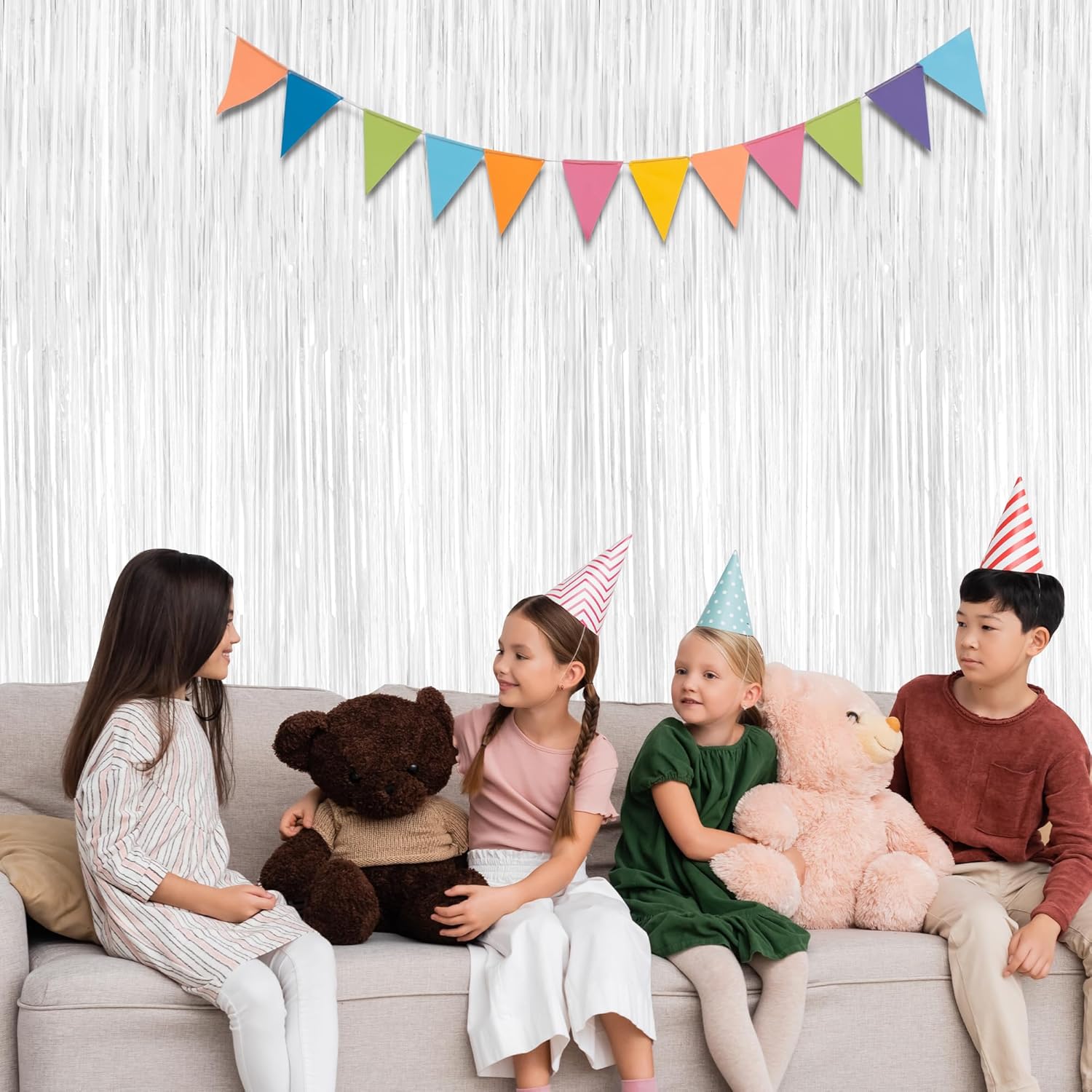 - Metallic Design: Each football tinsel backdrop is pure white with a reflective metallic finish, adding visual appeal and modernity, suitable for football party decor.