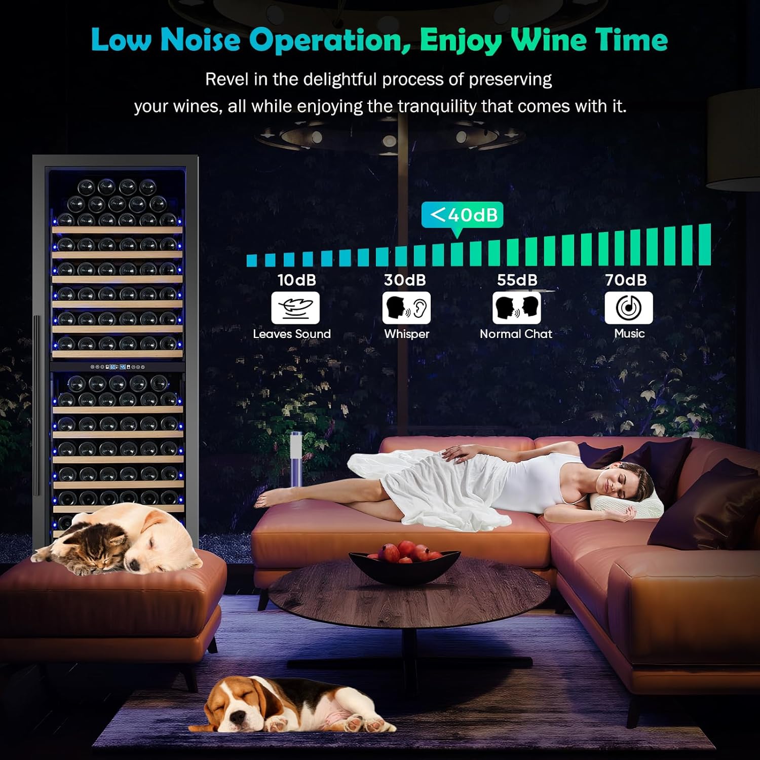 - 200-BOTTLE LARGE CAPACITY & ACTIVATED CARBON FILTRATION SYSTEM - This tall wine fridge offers an impressive storage capacity of up to 200 Bordeaux-style 750ml wine bottles (standard Bordeaux size: 11.8" H x 2.75" W), making it an ideal choice for wine enthusiasts and collectors. The built-in activated carbon filtration system continuously purifies the air, effectively absorbing odors and circulating fresh, clean air throughout the cabinet. This helps maintain an optimal aging environment, ensuring your wines retain their original quality and flavor over time