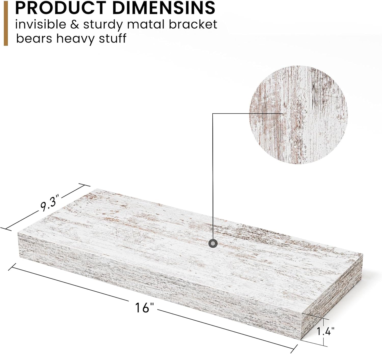 - 9 Inch Deep Design - This wall shelf measures 16"W x 9"D x 1.6"H. Extra deeper and thicker design in order to bring maximizes storage space and weight capacity, even hold up to 40 lb. This floating shelf taking up zero square feet, reduces clutter and highlights décor in compact spaces.