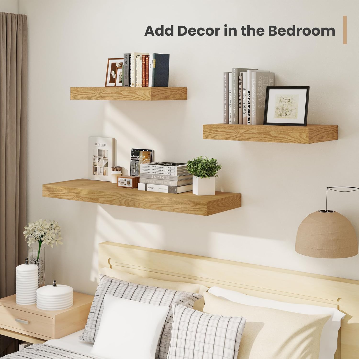 Heimlove 12" Deep Floating Shelves, 36 x 12 Inch Wall Mounted Long Floating Shelf with Invisible Brackets, for Home Decor, Bedroom, Kitchen, Living Room, Bathroom - 2 Pack, Oak