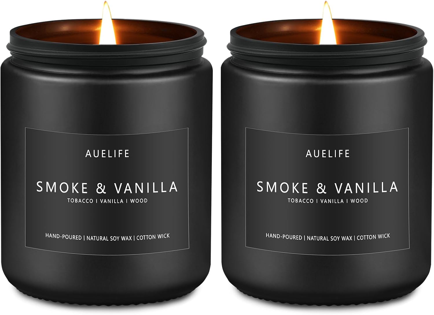 2 Pack Smoke & Vanilla Candle | Candles for Men - Masculine Candle, Soy Candles for Home Scented - Gifts for Men, Home Fragrance Gifts - Each of 7oz