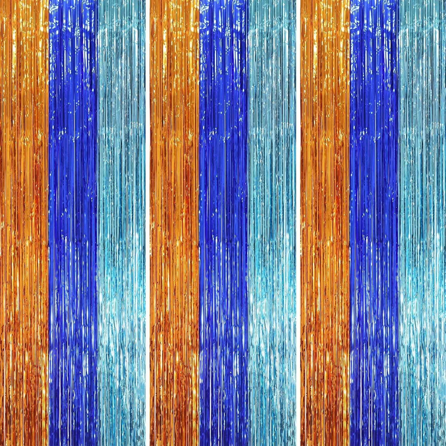 - Package Included: 3 packs of blue orange foil fringe curtains, the size of the foil curtain is 3.3*8.2ft. It's long enough to fit any occasion