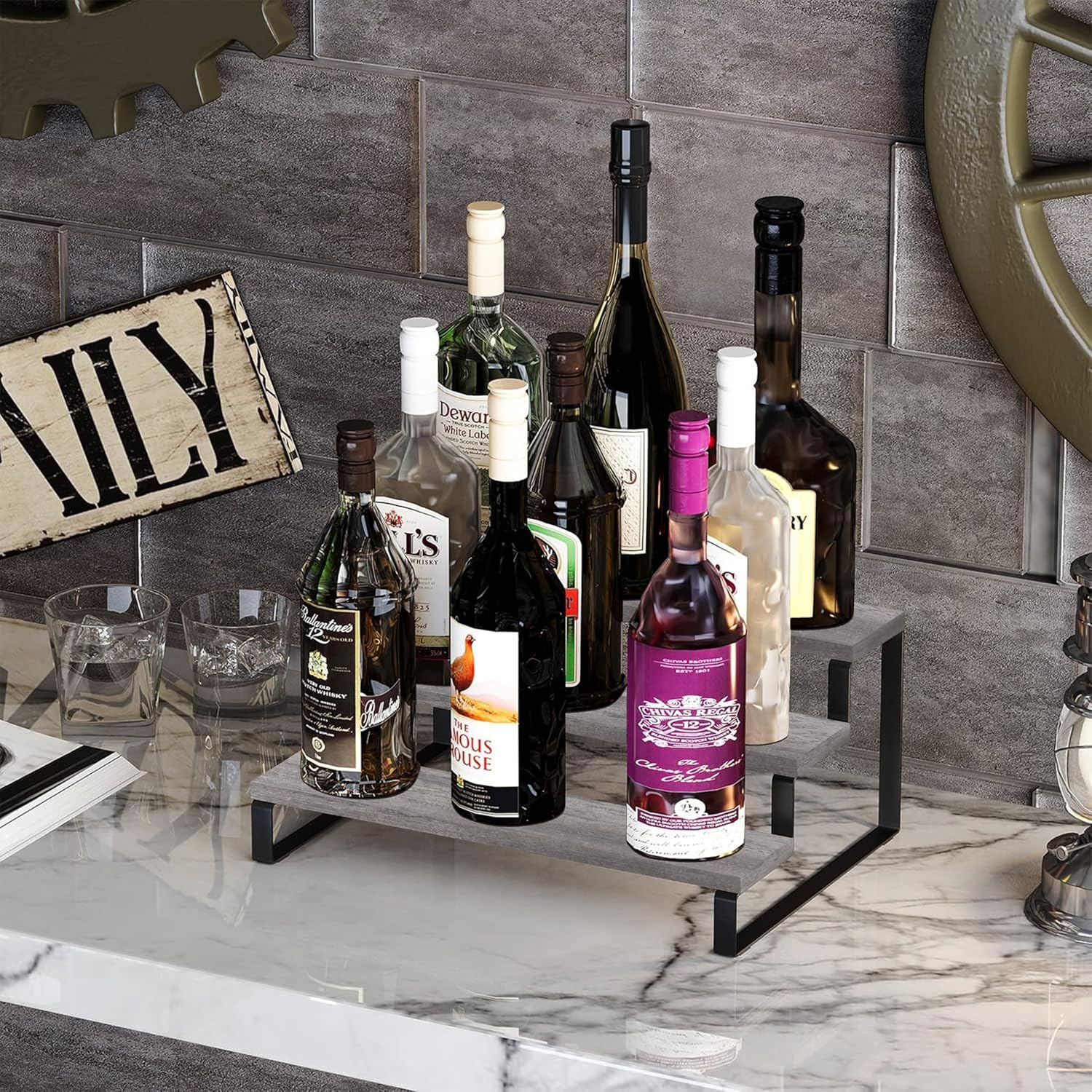 YINMIT Wooden Display Riser Stand, Tiered Perfume and Cologne Organizer Stand, 3 Tier Spice Rack Organizer, Rustic Display Shelf for Candles (3 Tier,Grey)