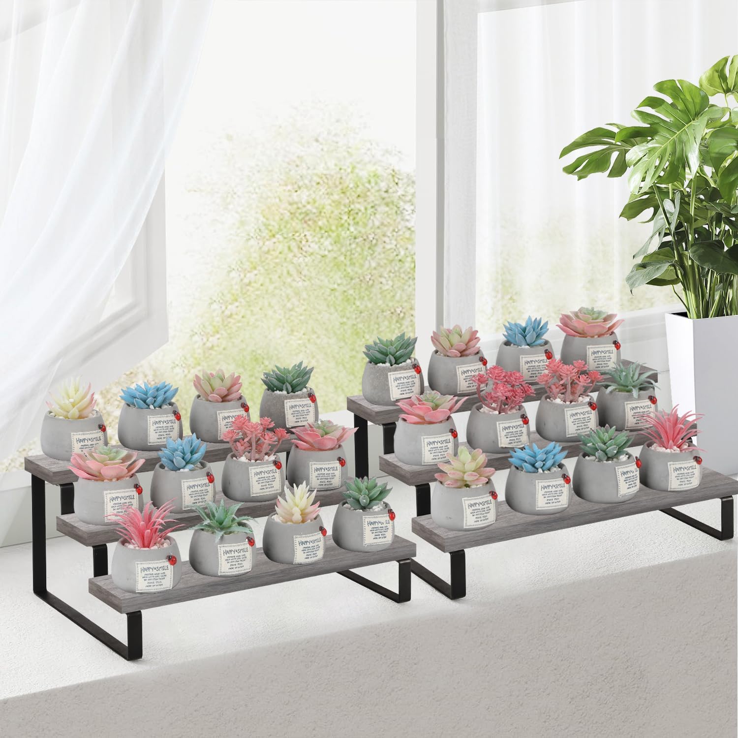 - Quick Setup & Easy Cleaning: You can have this 3-tier display riser stand assembled in 10 minutes with detailed instructions and tools. The wooden surface is waterproof and dust-free, a damp cloth could keep the counter shelf clean. (Assembly tools and accessories are included in the package)