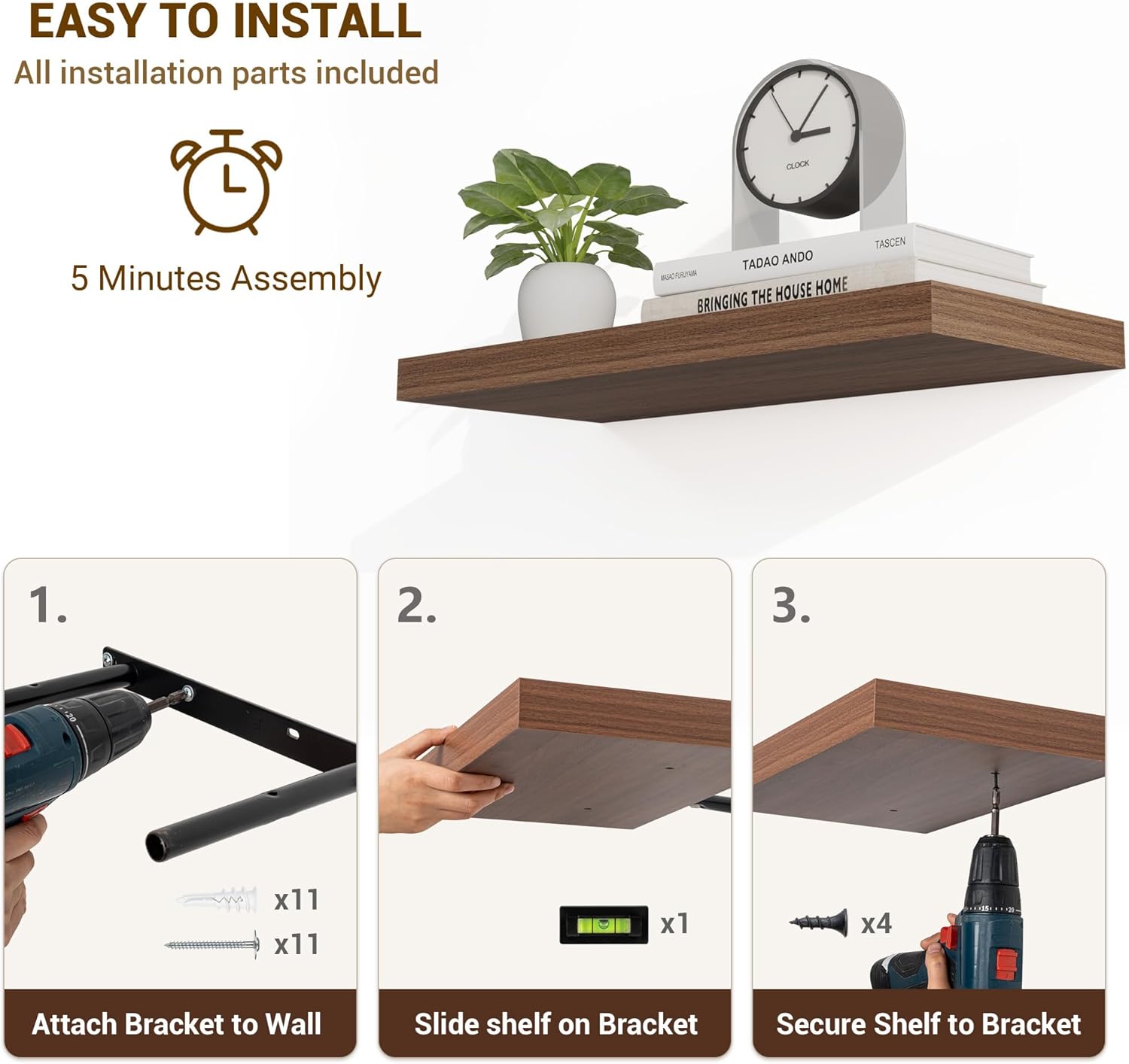 - 【Easy Installation】Designed with user convenience in mind, these shelves come with all necessary mounting hardware and clear instructions. You can have them up and ready to use in less than 5 minutes. Plus, our customer service is always ready to assist with any queries or concerns, ensuring a hassle-free experience