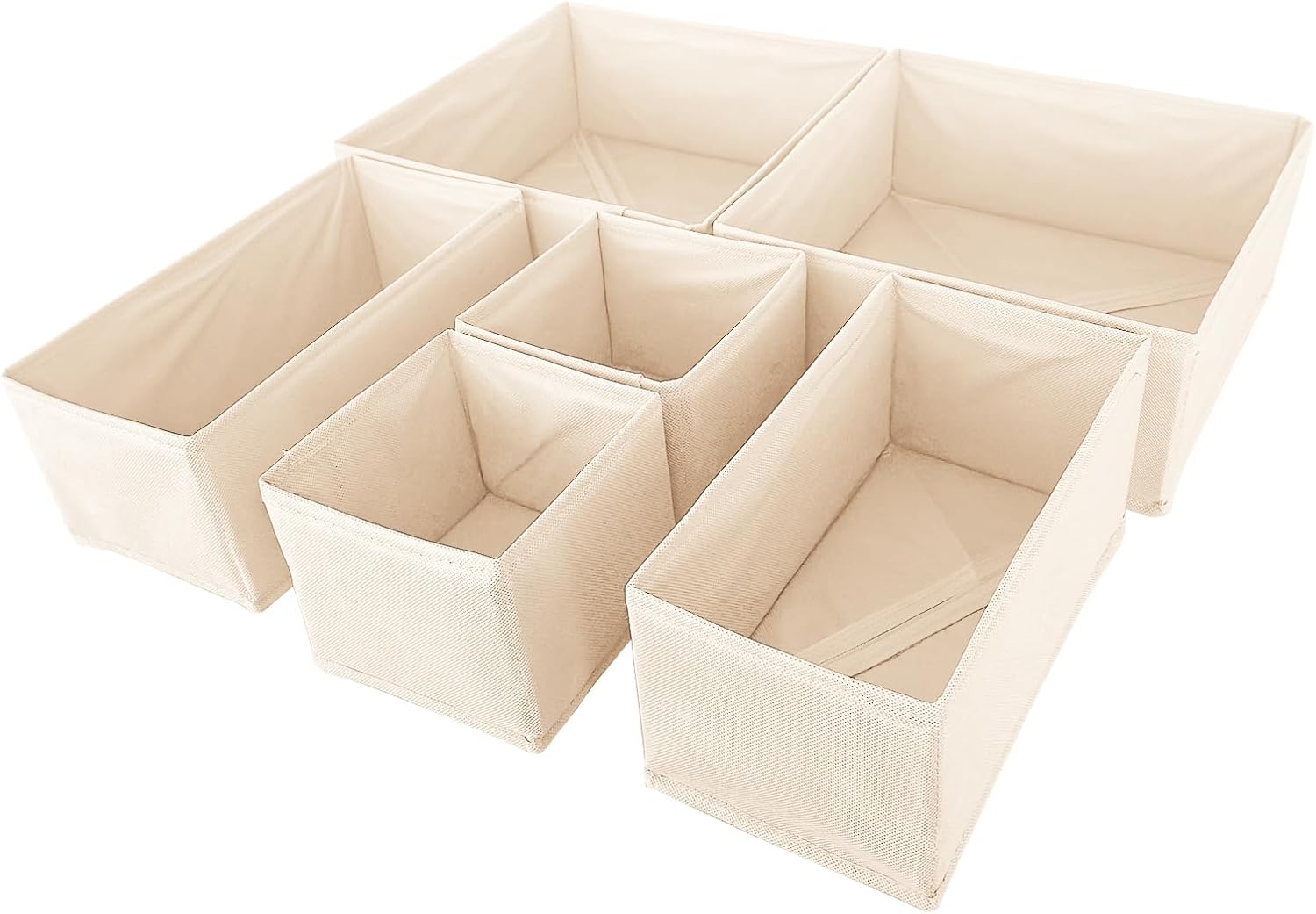 - 【SAVE SPACE】The 6 pack dresser drawer organizers come in different sized boxes to match all sizes of drawers.Drawer organizers are easy to organize your items so that the items all have their own separate space to make life neater.Sort underwear,bras,socks,ties,scarves,shirts,t-shirts,lingerie,accessories,etc.