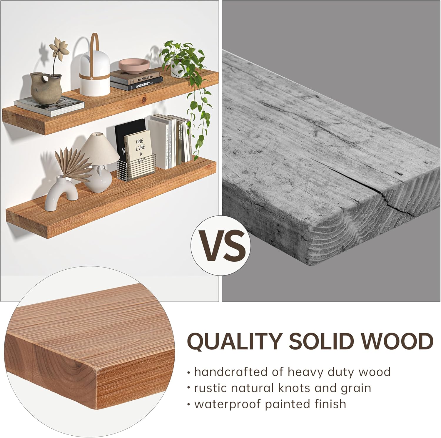 Floating Shelves for Wall, USA-Sourced Fir Wood 48 Inch Wall Shelves Set of 1, Natural Rustic Solid Wooden Floating Shelves Wall Mounted, Nursery Book Storage Shelf, Display Shelf for Bathroom