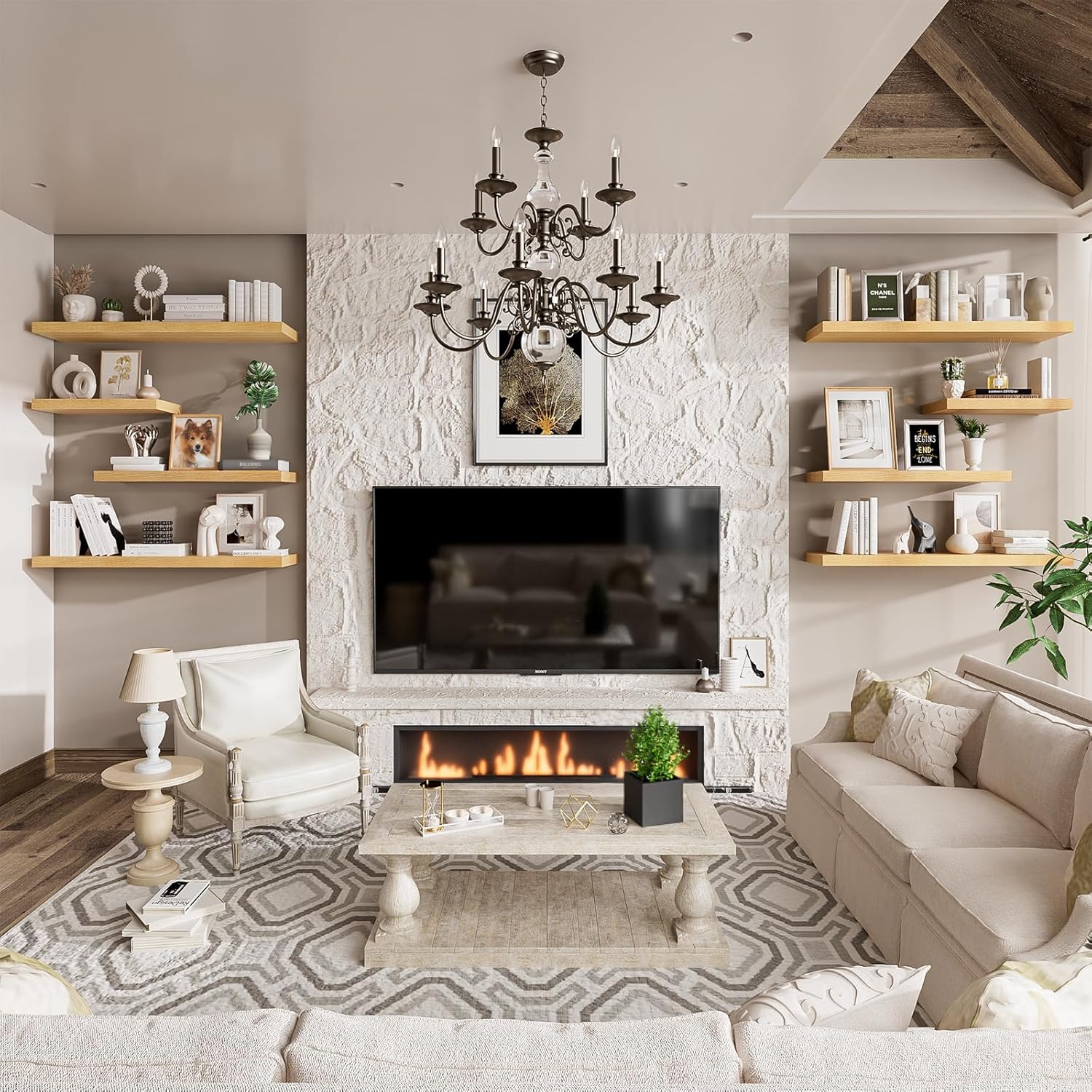 These wall shelves are both functional and stylish, giving my living room a fresh look.