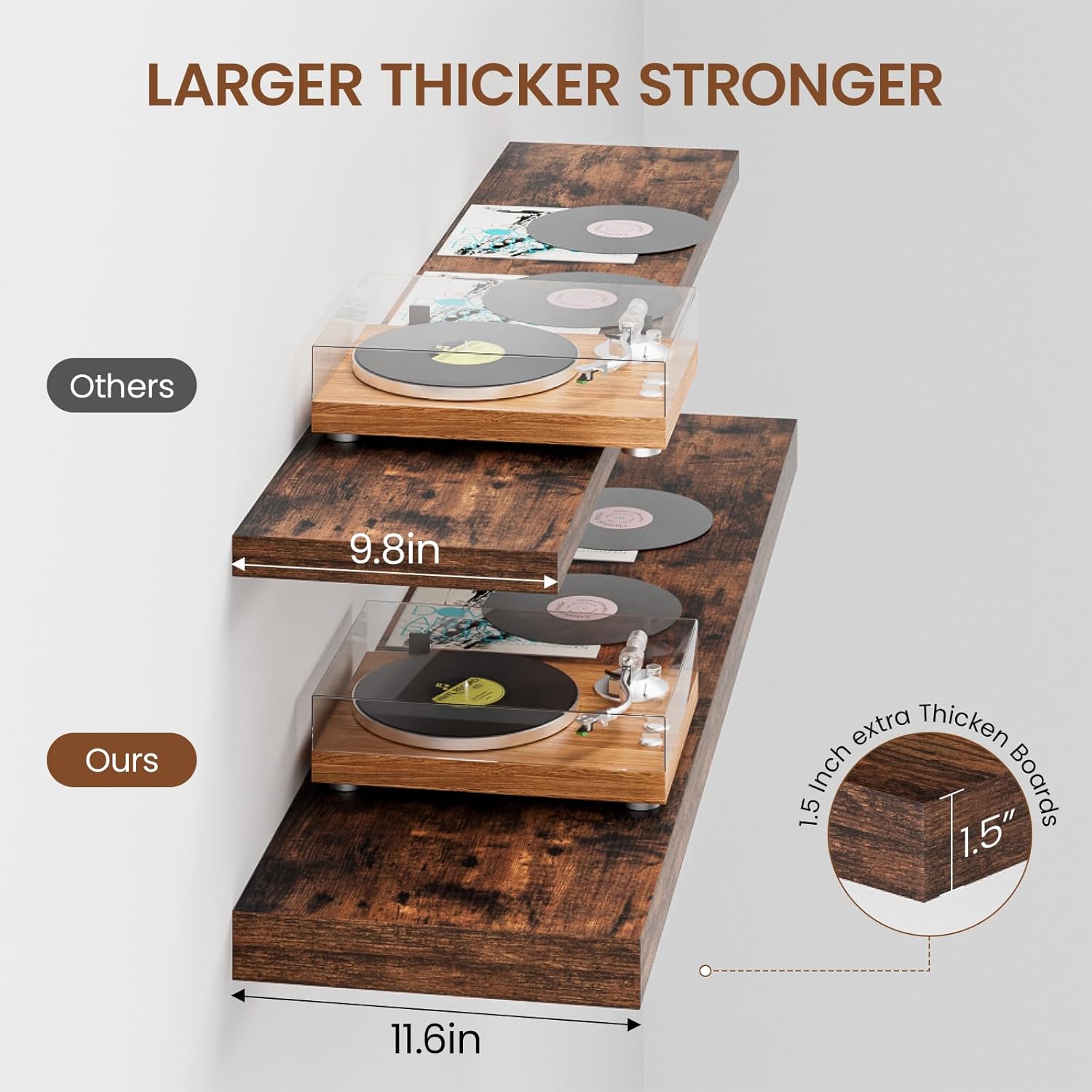 - Extra Deep Floating Shelves: Measuring 11.6” D x 47.2” W x 1.5” H, these shelves are crafted for maximum depth and durability. The spacious 12” depth gives you plenty of room for stylish display, organized storage, and decorative accents. Perfectly suited for your bathroom, kitchen, or living room, they enhance both function and flair in any space!