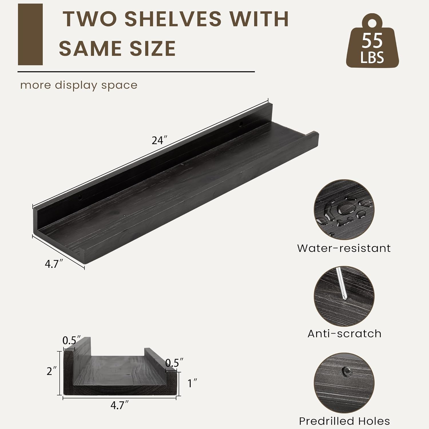 Floating Shelves for Wall, Picture Ledge Shelf 24 Inch Solid Wood Set of 2, Rustic Wall Shelves with Lip, Kids Bookshelf, Photo & Picture Live Edge Floating Shelves for Bedroom, Living Room, Kitchen