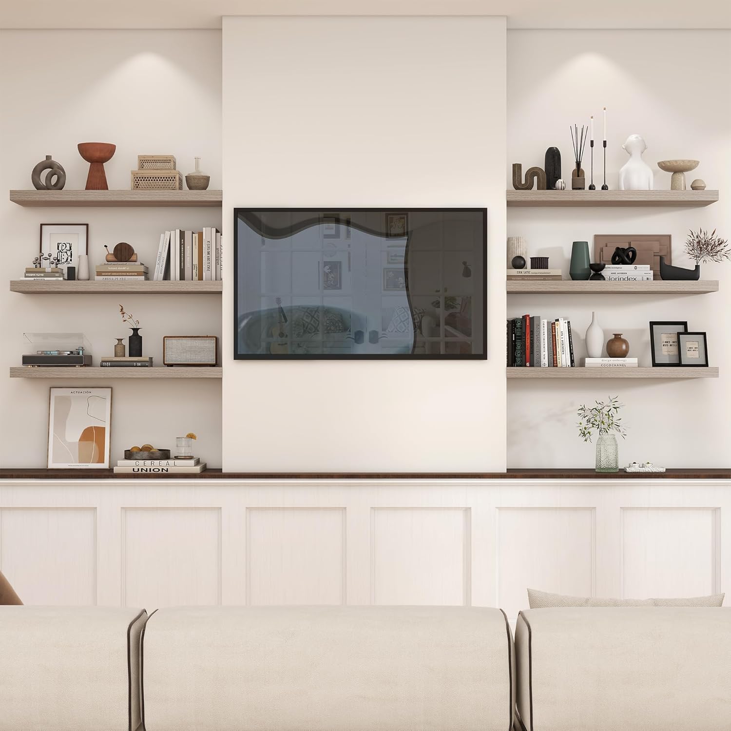 These wall shelves are both functional and stylish, giving my living room a fresh look.