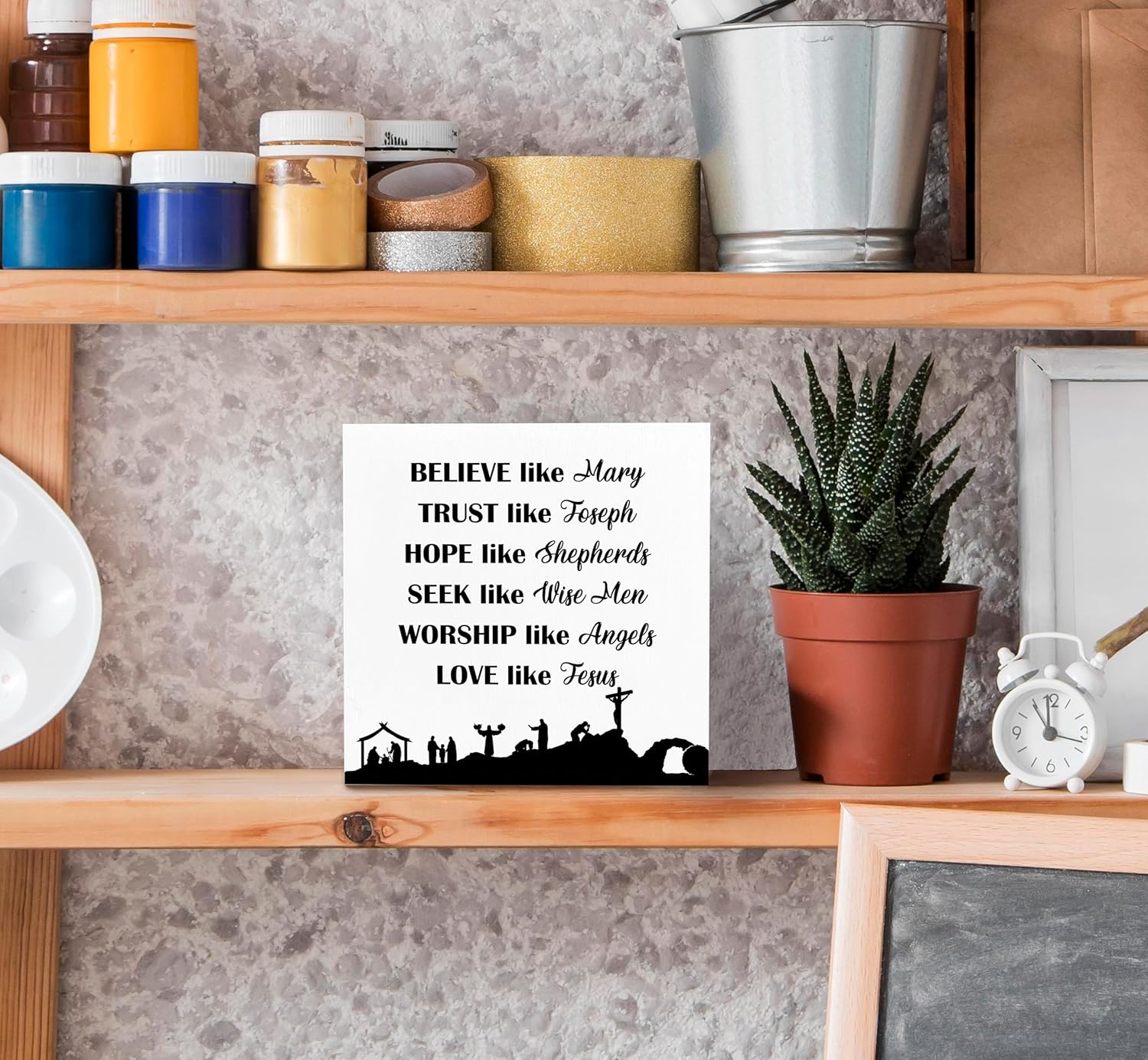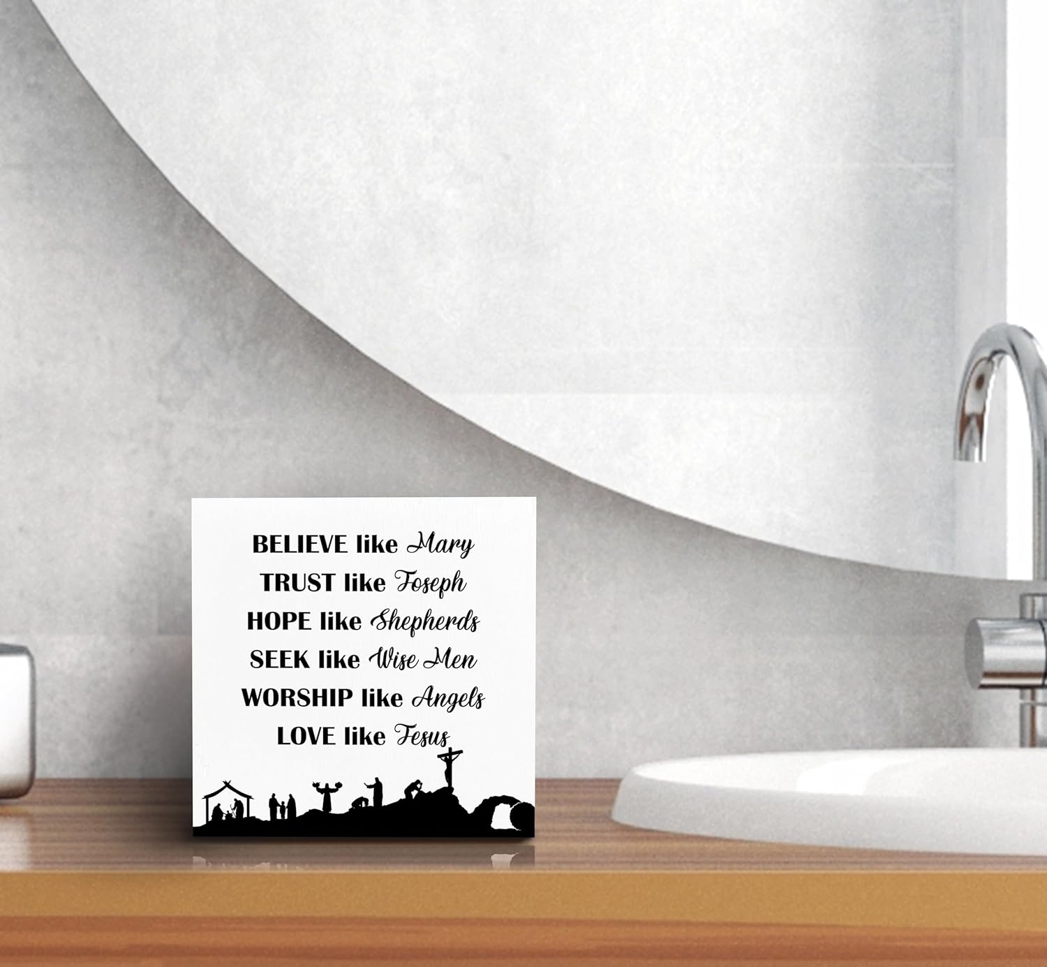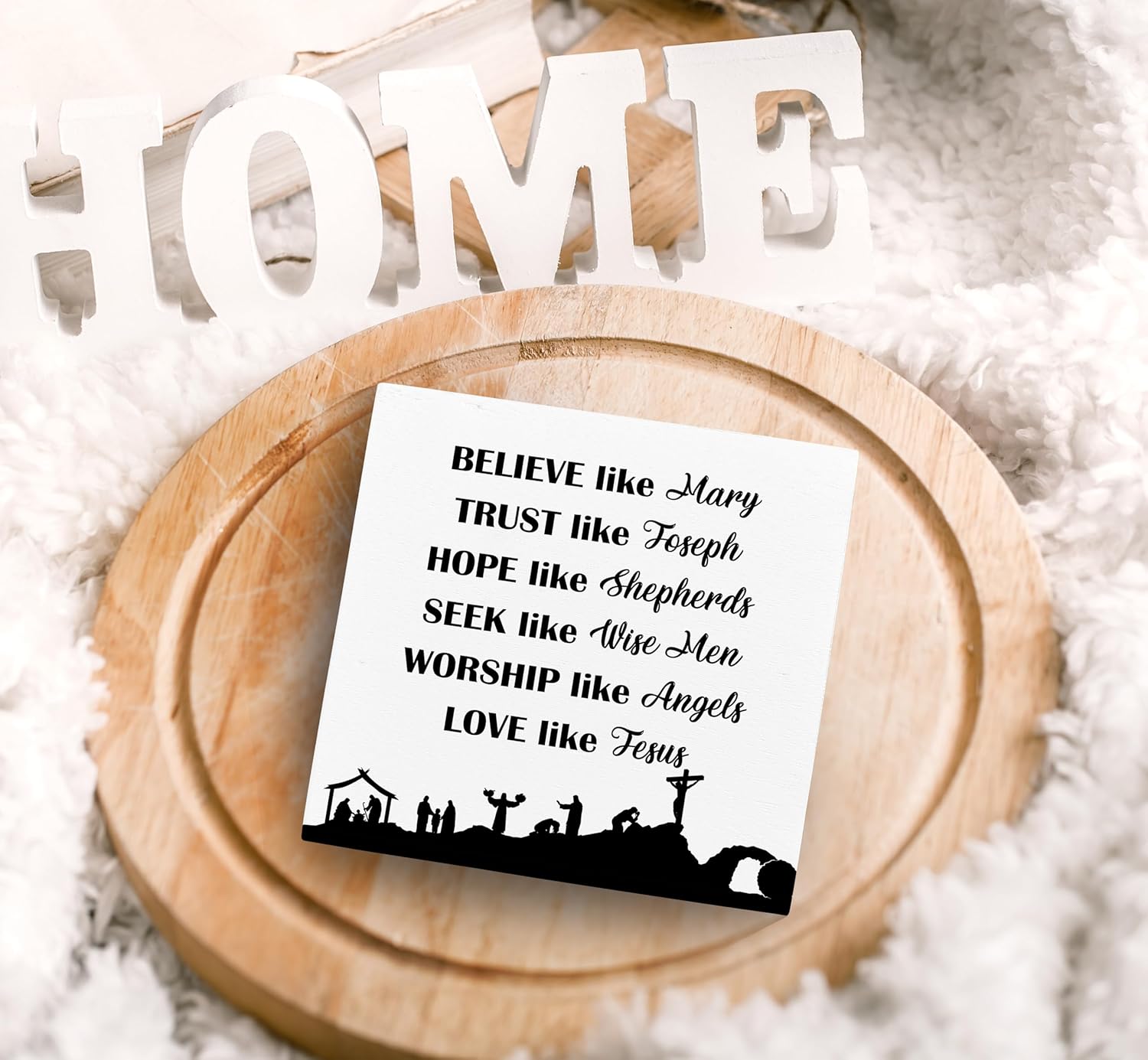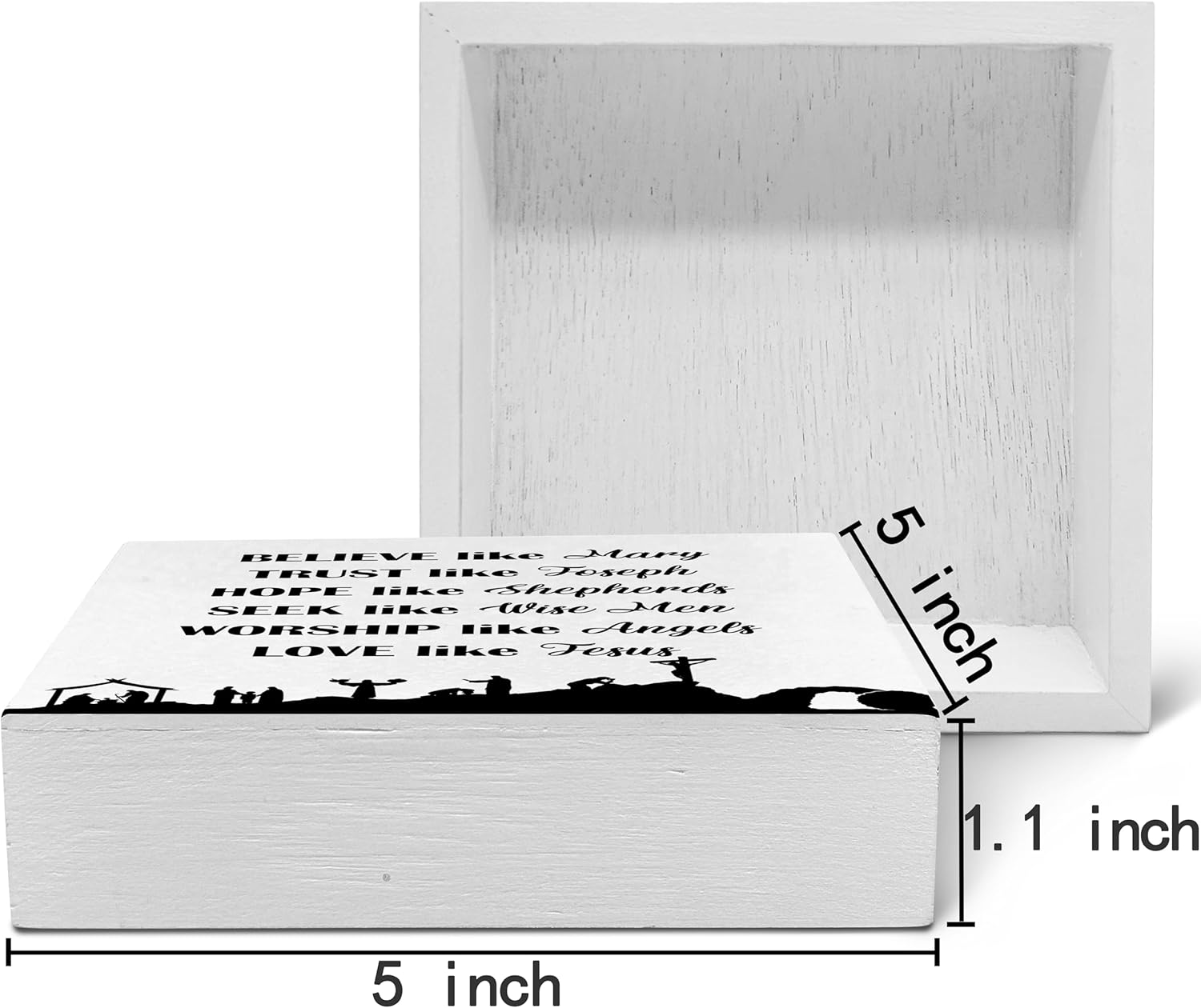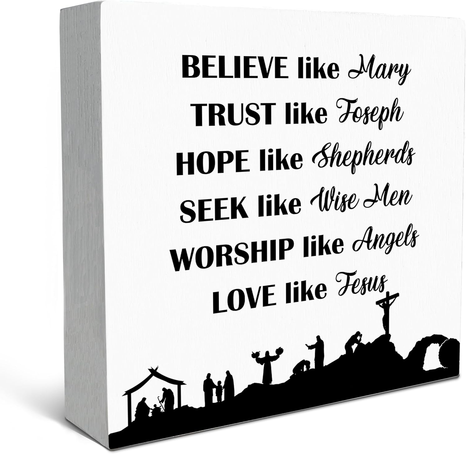 SRADMO Christian Signs for Home Decor, Inspirational Bible Verse Wood Box Sign Desk Decor, Bible Verse Decor, Christian Theme Wooden Block Box Sign Decoration for Home Office Shelf Table Decor