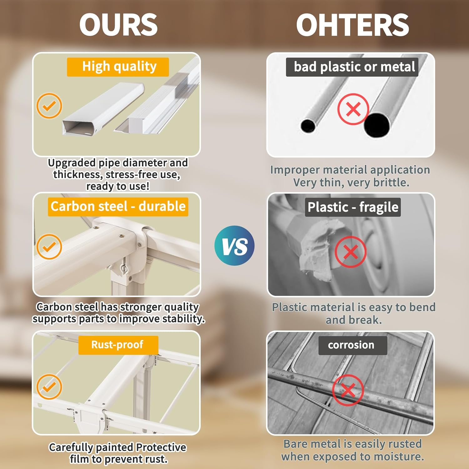 - 【Space-Saving & Foldable Design】Effortlessly store this drying rack when not in use! Its collapsible aluminum frame folds flat in seconds, perfect for apartments, dorms, or small spaces. Lightweight yet sturdy, it’s ideal for both indoor and outdoor use—balcony, bathroom,indoor.