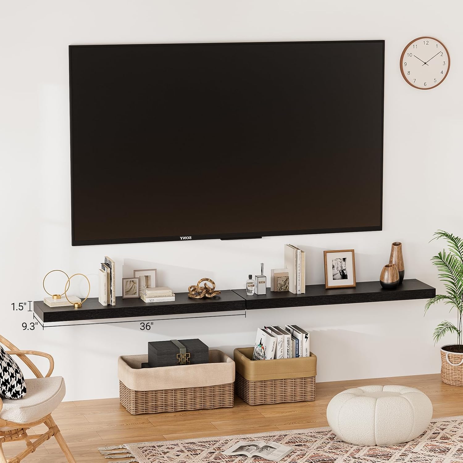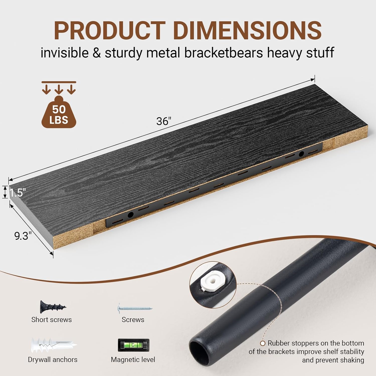 - 【Longer Design】Our pretty 36 inch wall shelves are 36"W x 9.3"D x 1.5"H.Our black shelves for wall is longer than traditional designs and can hold more items.The 36 inch floating shelf optimize wall space,helping organize essentials without taking up floor space in your home.