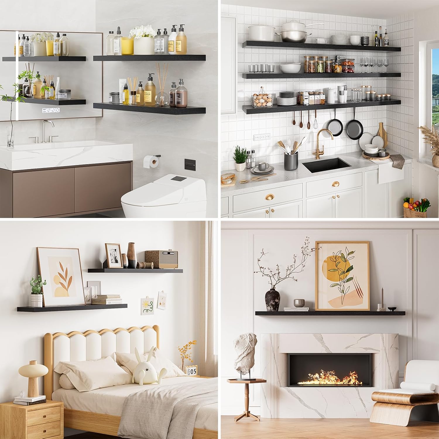 - 【Modern Rustic Look】Our heimlove floating shelves 32 inch are made from durable engineered wood,which blends well with modern and rustic farmhouse wall decor alike.The 32 inch black floating shelves is available in colors & sizes,perfect for storing books,plants,collectibles,etc..