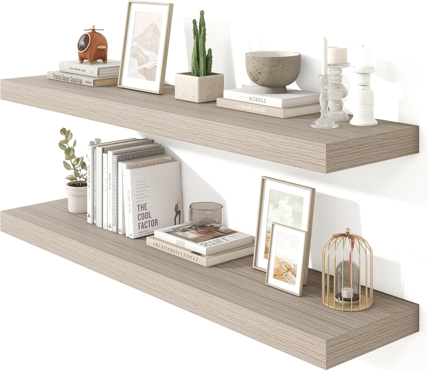 - 【Thickened and widened board】The size of each board is 47.3"W x 10.23"D x 1.8"H. Our wall-mounted floating shelves are made of high-quality medium-density fiberboard as the main material, combined with an integrated hidden metal bracket to ensure the stability and durability of the wall-mounted shelves. The shelf can bear up to 22 pounds.
