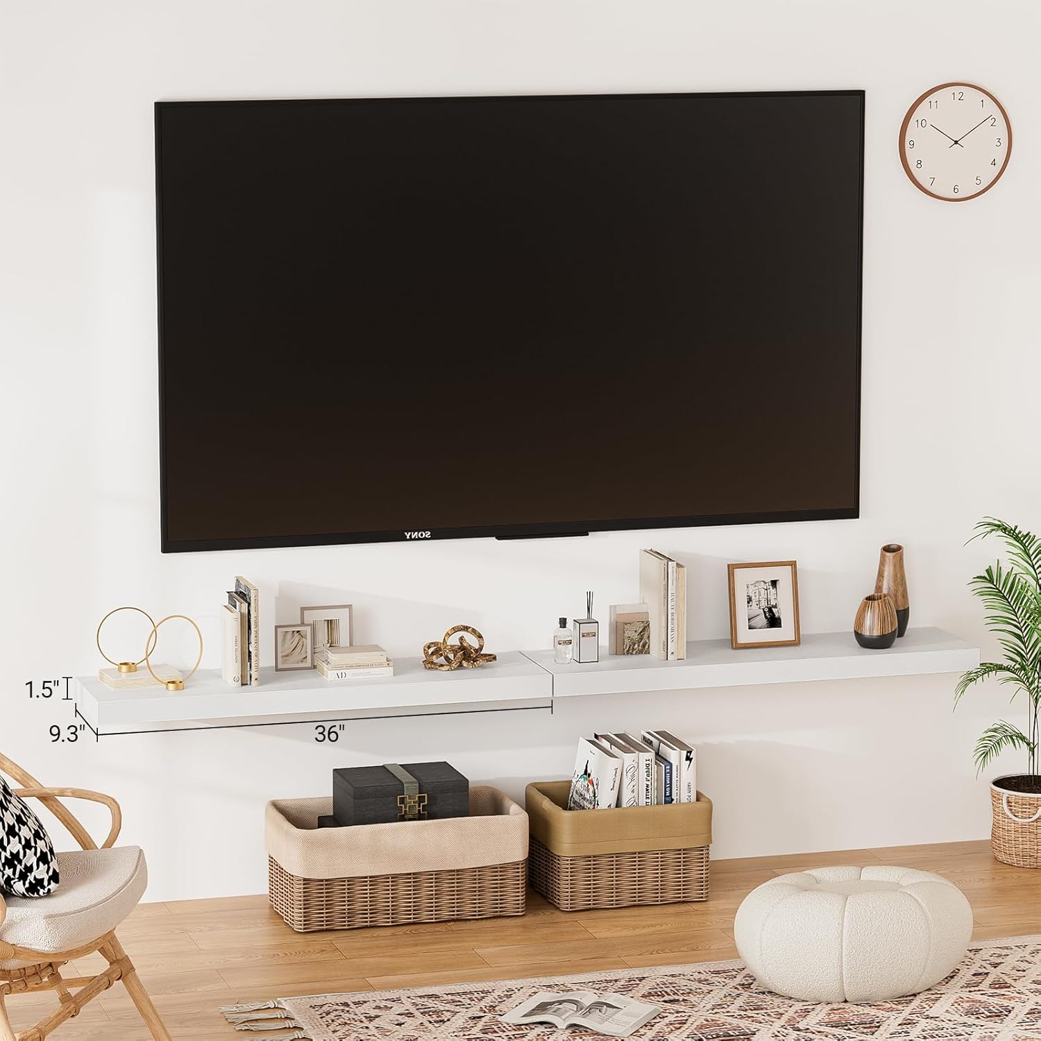 - 【Longer Design】Our pretty 36 inch wall shelves are 36"W x 9.3"D x 1.5"H.Our white floating shelves is longer than traditional designs and can hold more items.The 36 inch white floating shelf optimize wall space,helping organize essentials without taking up floor space in your home.