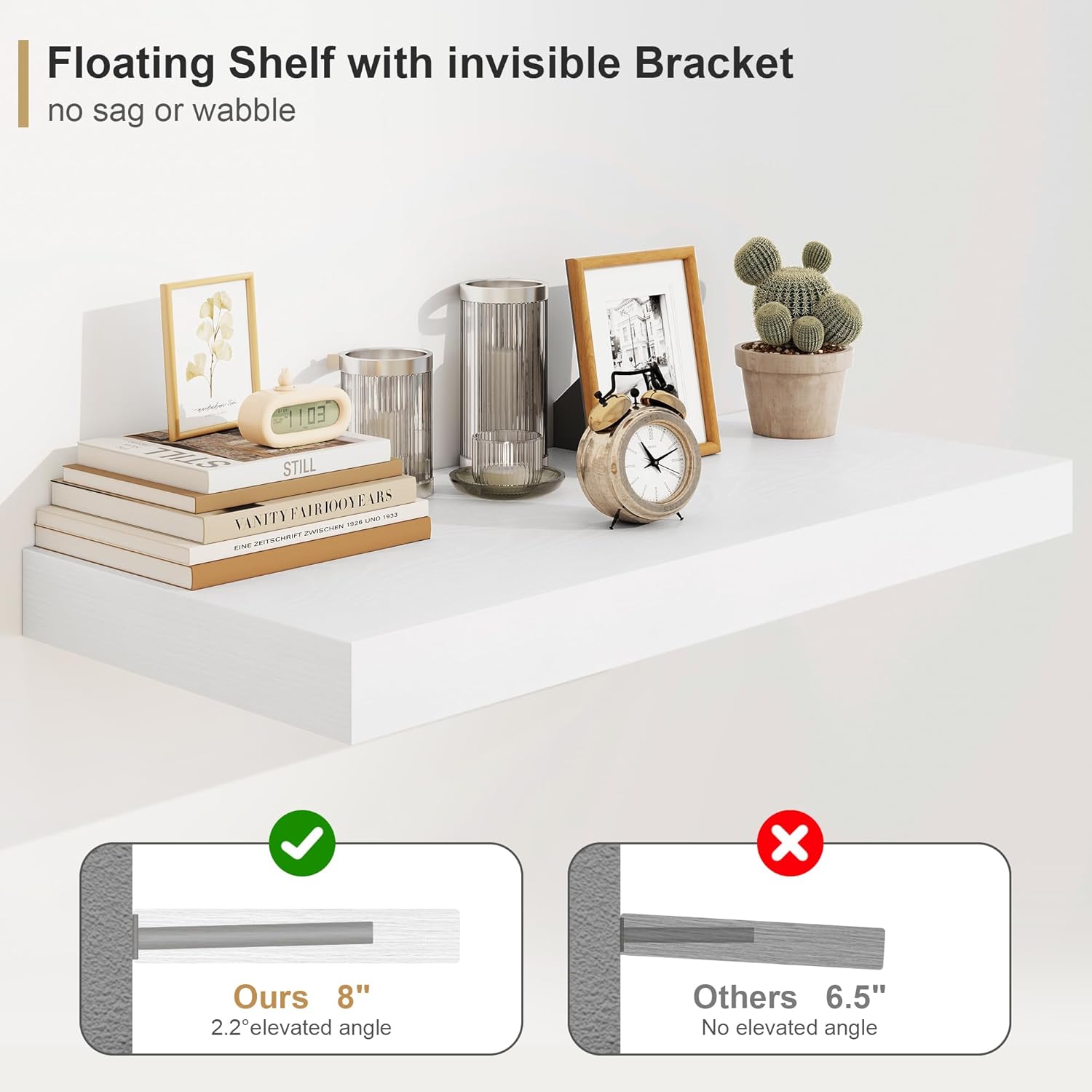 Heimlove White Bathroom Shelves Floating Shelves for Wall Shelf Over Toilet Long Wall Mounted Modern Farmhouse,48 x 12 Shelves with Invisible Brackets for Living Room, Kitchen, Bedroom