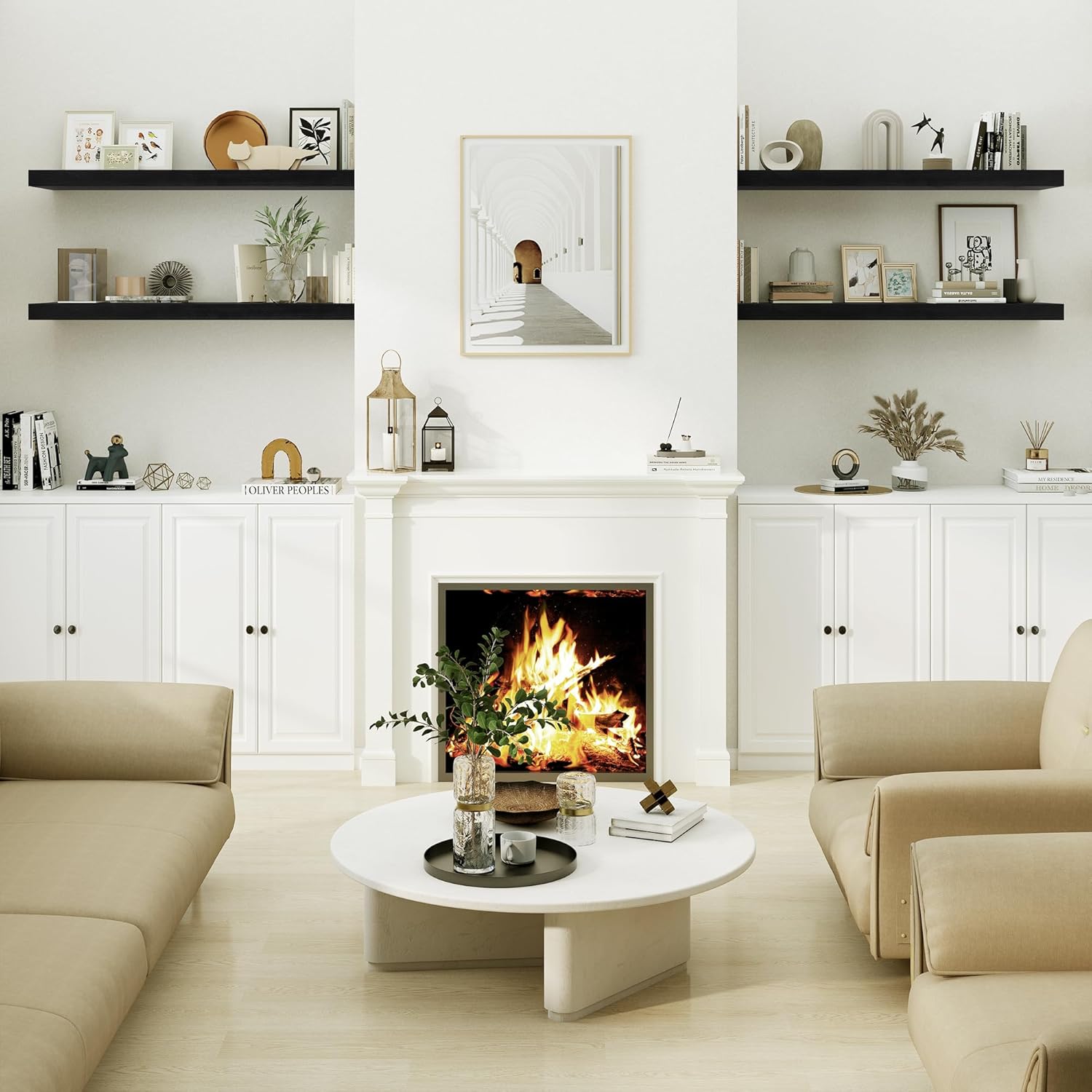 These wall shelves are both functional and stylish, giving my living room a fresh look.