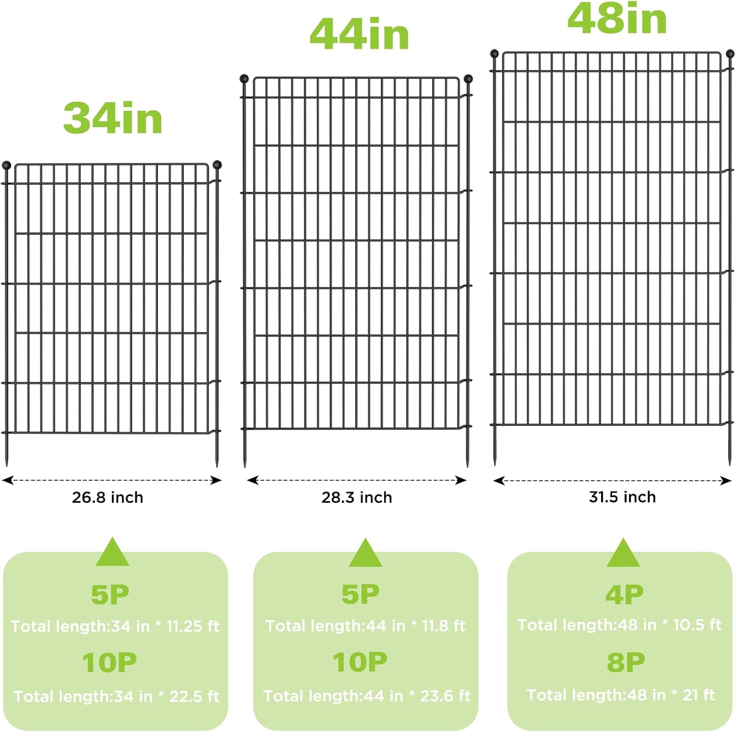 5 Panels No Dig Garden Fence Animal Barrier, 44in(H) × 11.8ft(L) Decorative Metal Outdoor Dog Fence, Rustproof Pet Fencing for Yard, Patio, Flower Bed -Temporary Fencing| Easy to Install