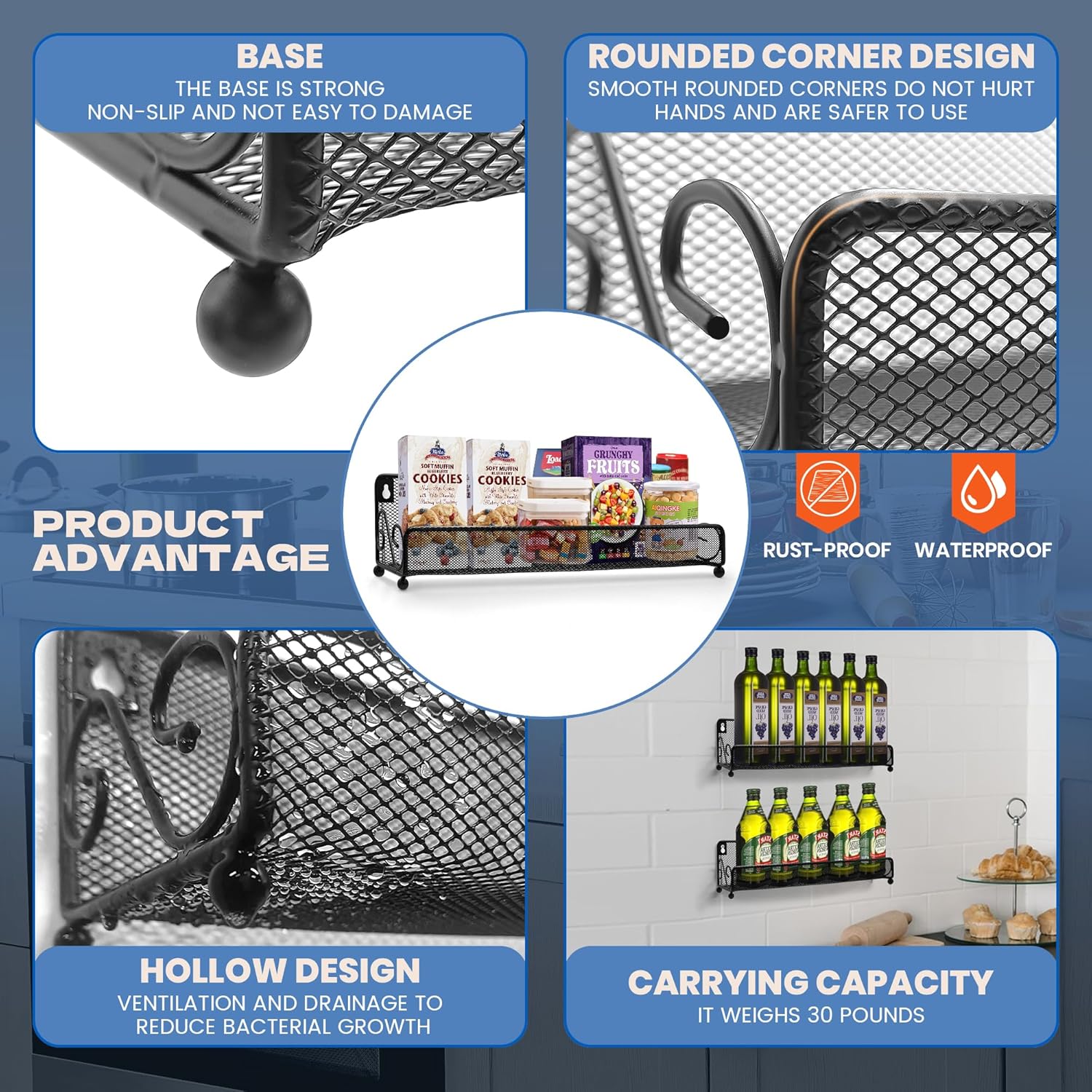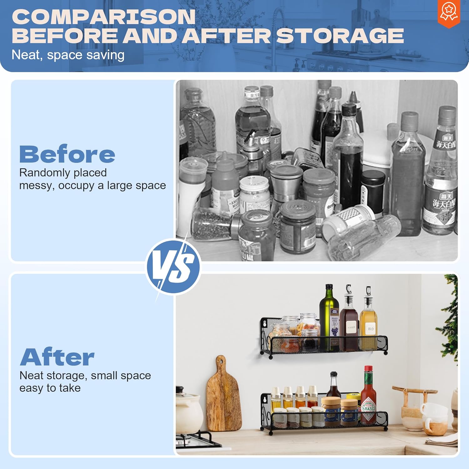 - Large Capacity & Height Adjustable: Our spice racks designed for maximum flexibility, capacity larger 40% than others. wide basket is designed to fit larger items, such as big bottles and cans, providing compatibility with a wide range of kitchen essentials.