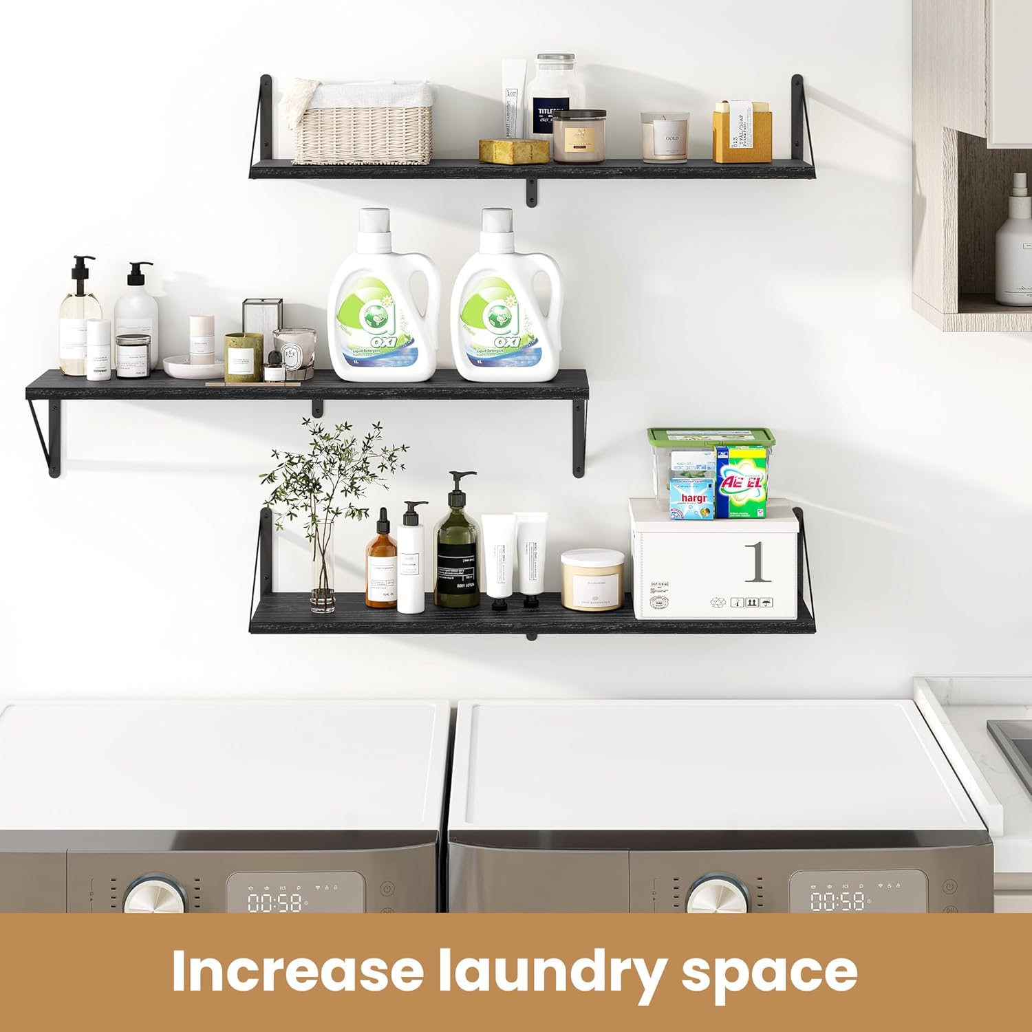 Heimlove 36 Inch Black Floating Bookshelves Set of 3,Heavy Duty Wall Mounted Bookshelves,Bookshelf for Living Room,Bedroom,Kitchen,Laundry Room Storage & Decor