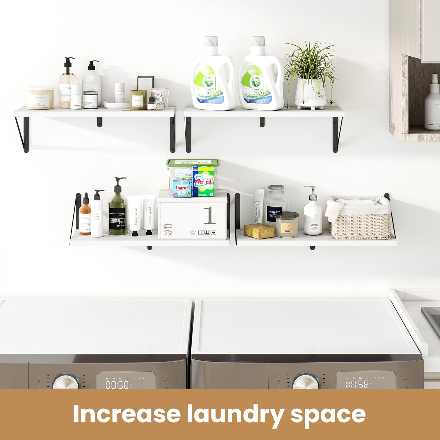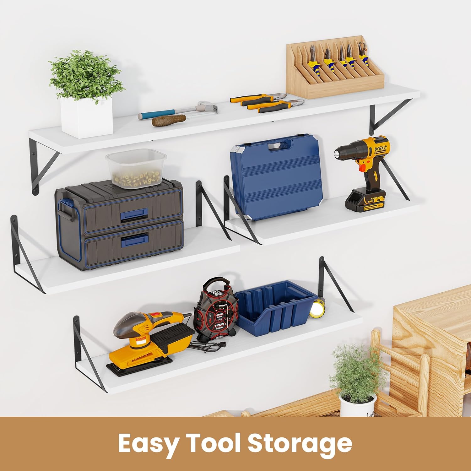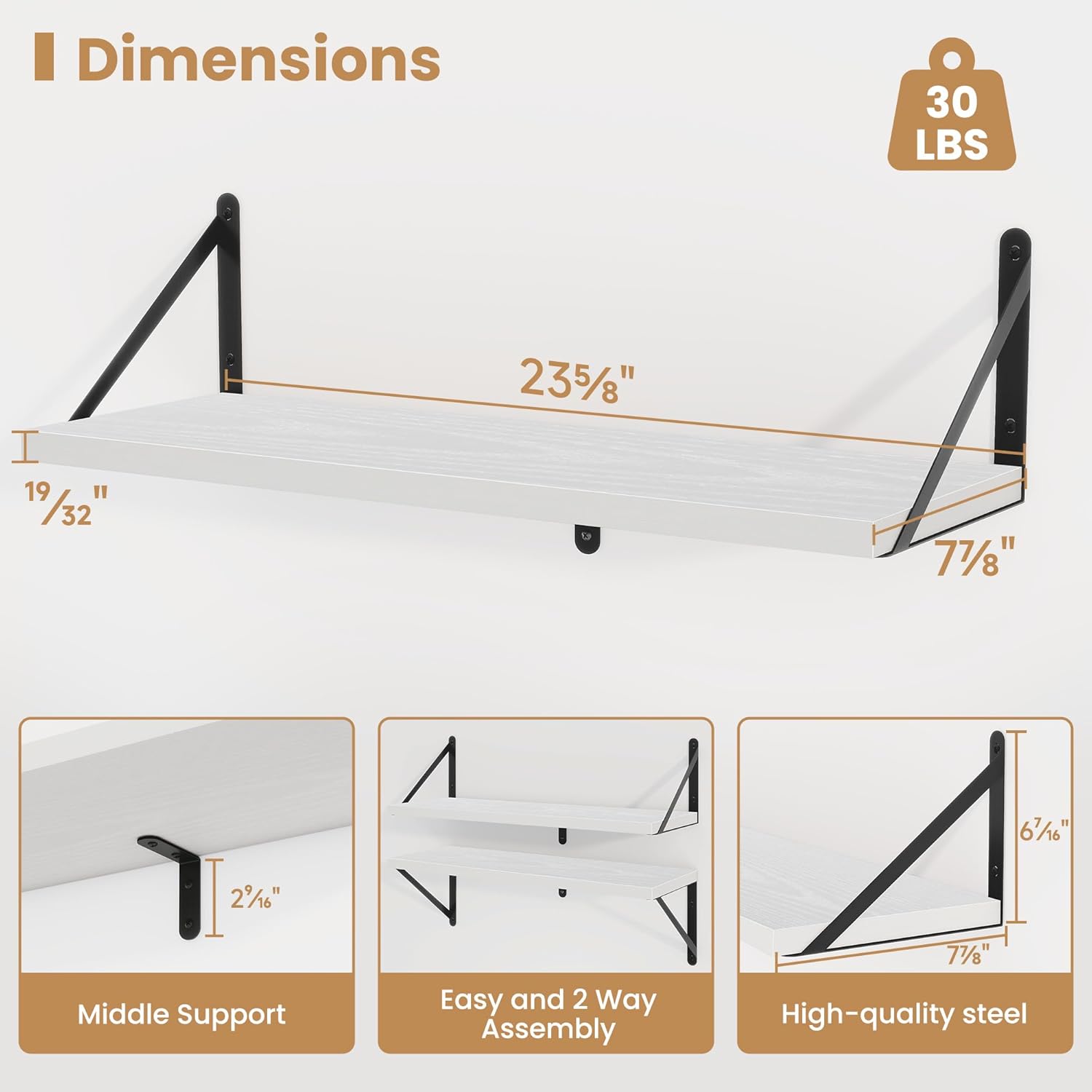 - 【Sturdy and Durable】The wall-mounted shelves are sturdy enough,with a load-bearing metal frame added in the middle,which will not deform and can withstand a weight of 30 pounds. It is very suitable for use as a wide bookshelf,TV stand,for home office,laundry room. Follow the instruction steps,including all necessary hardware,easy to assemble.
