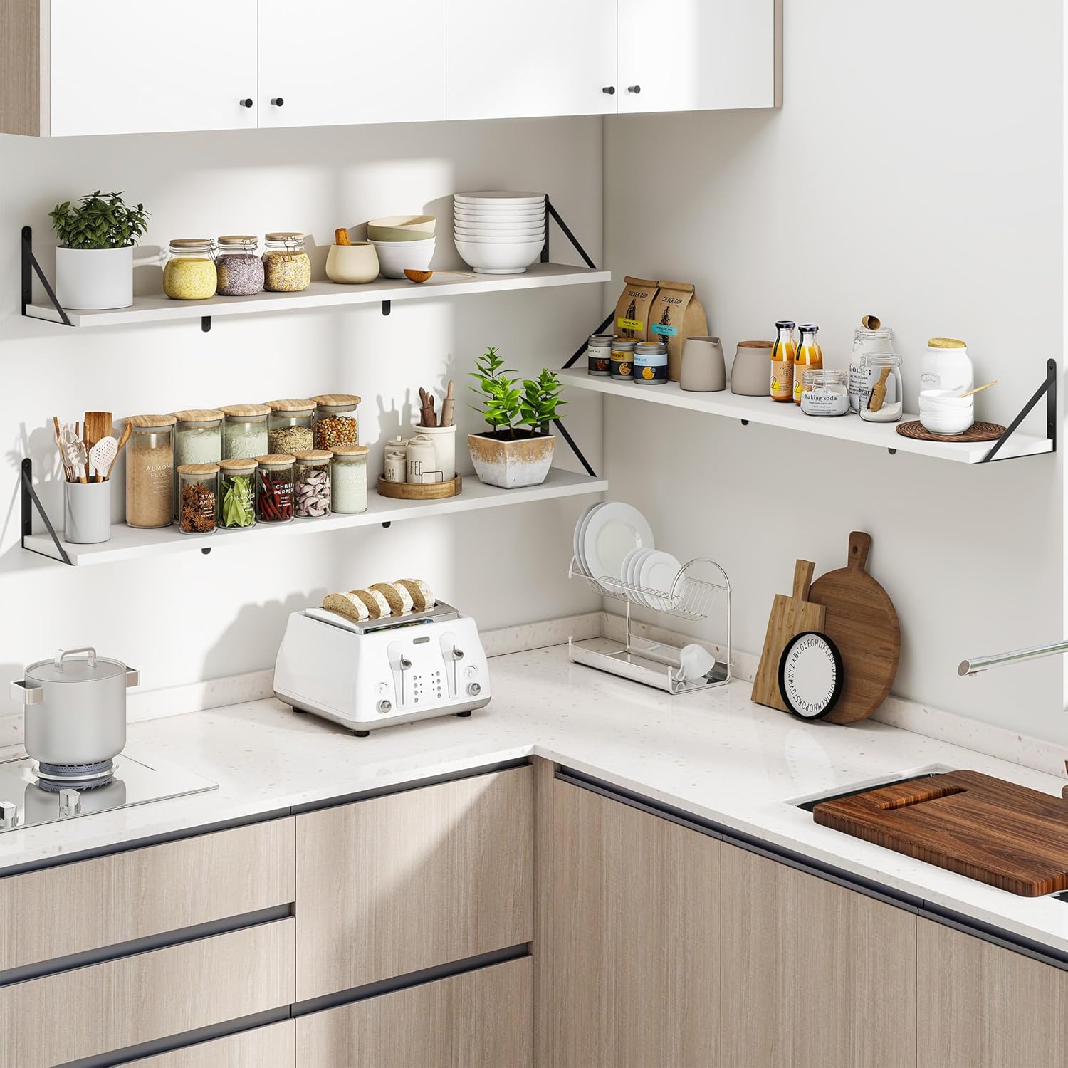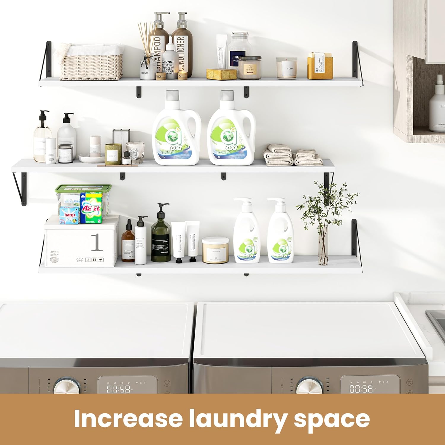 Heimlove 48 Inch Large Floating Bookshelves Set of 3,White Wall Mounted Bookshelves,Heavy Duty Wooden Shelves for Living Room,Bedroom,Kitchen,Laundry Room Storage & Decor